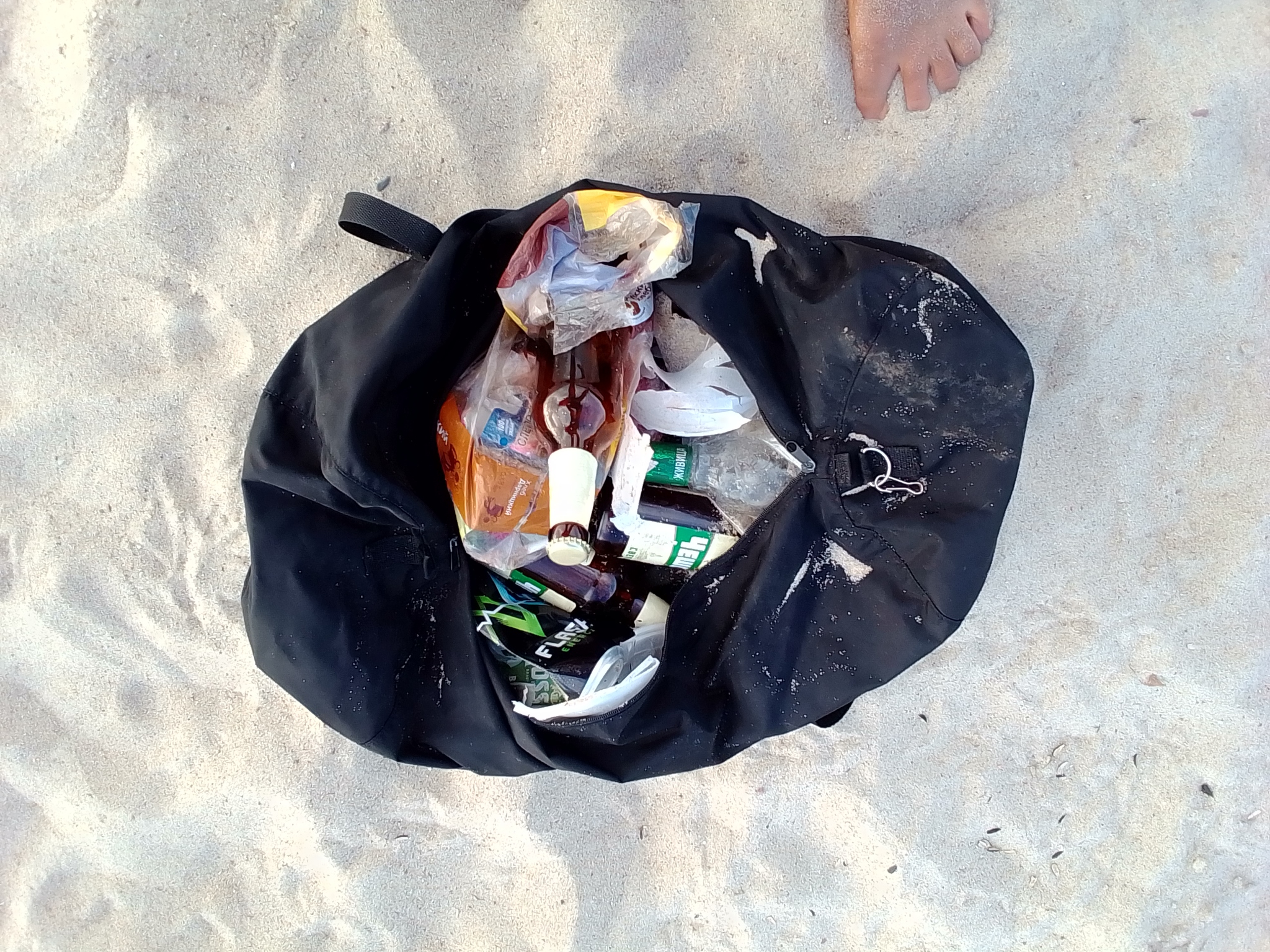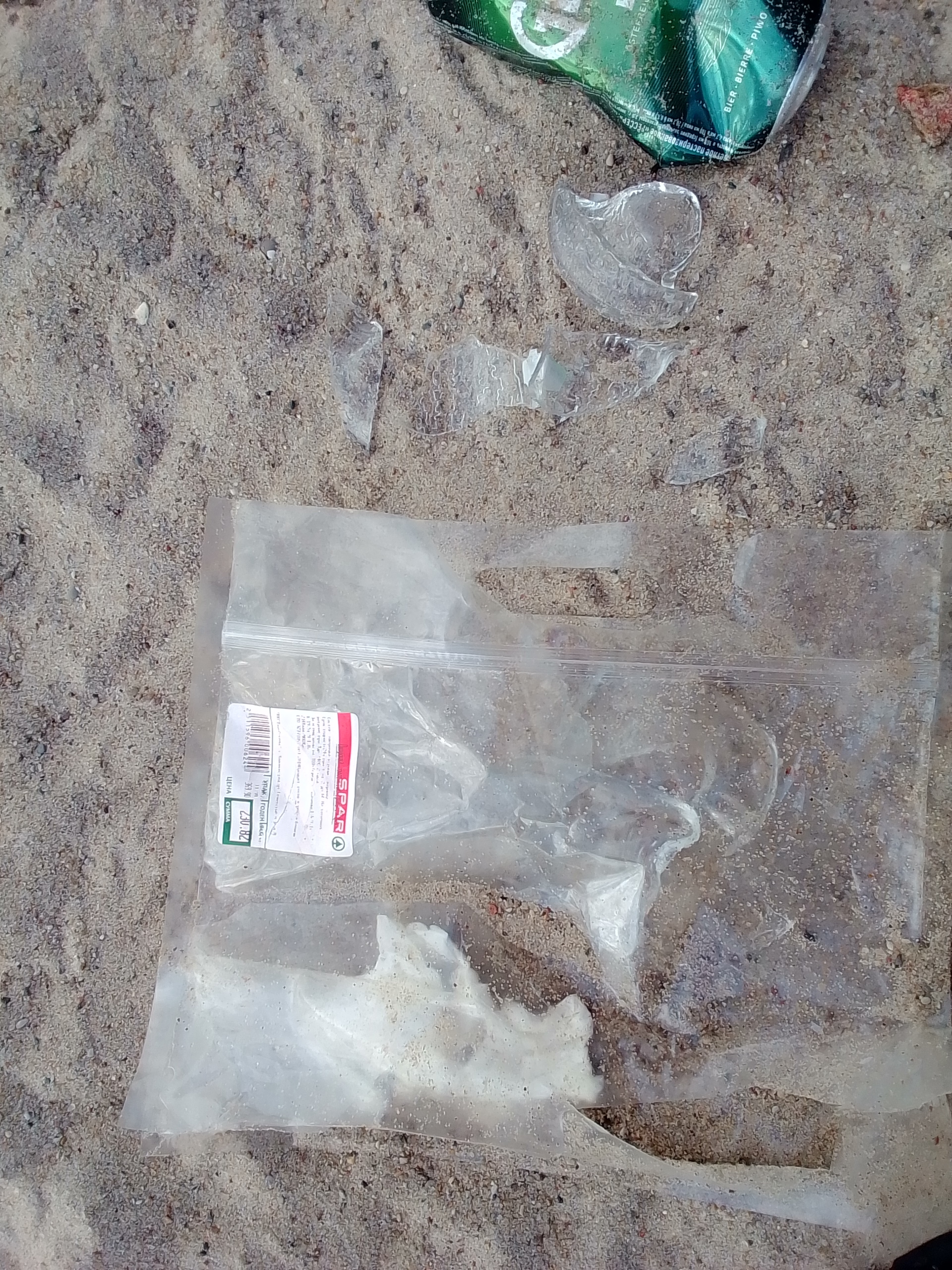Вижу на песочке какие то свиньи после себя мусор оставили. Бутылки, окурки, банки из под пива . Причем прикопали этот срач в песок, как кот в ковер. Придется мне на обратном пути всё убрать.