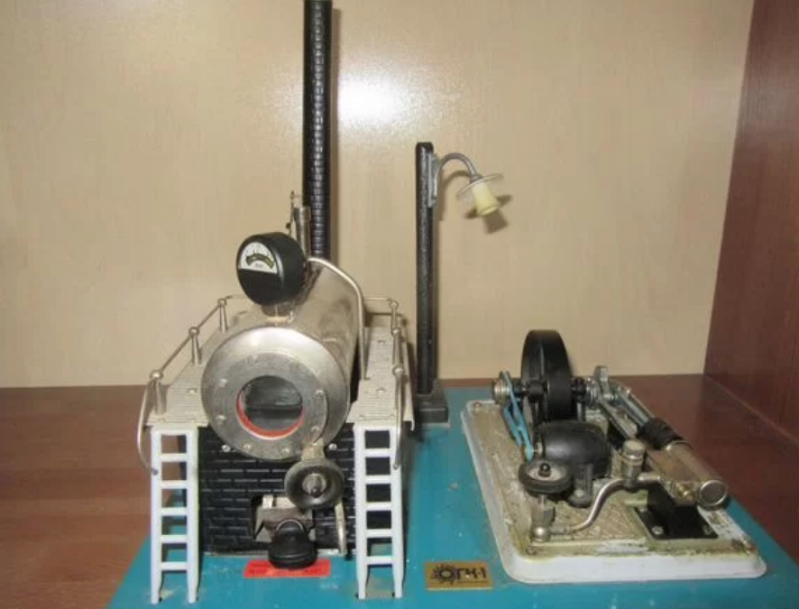Корпоративный подарок. Достаточно бессмысленная и суетная штука. Наливаешь воду, разжигаешь сухой спирт, ждешь. Минут через 10 начинает работать машина, которая крутит динамо, которое зажигает фонарик. Пар, дым, брызги масла и прочие радости. Дети смотрят с интересом пару минут.