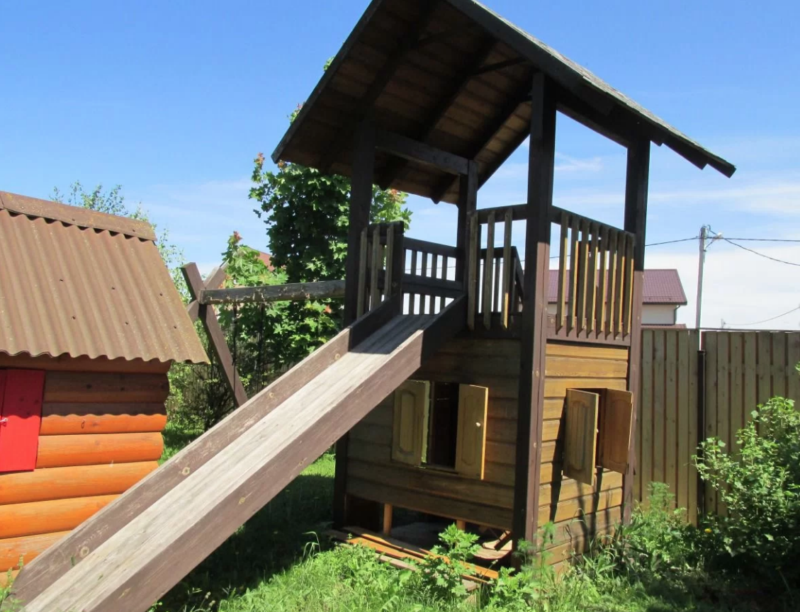 Сосед - строитель сказал мне, что владелец коттеджа, где он работает попросил его демонтировать этот игровой комплекс т.к. дети выросли. Мы с соседом его разобрали, фотографируя процесс и нумеруя доски. Когда привезли домой и разргузили, то оказалось, что привези мы просто кучу старых неопрятных деревяшек. Но женщина купила эту кучу и обещала позвонить после сборки. Позвонила. Оказалось, что когда она все это привезла к себе на участок, то над ней смеялись все соседи. Но всё получилось. Муж собрал, подшаманил, покрасил.