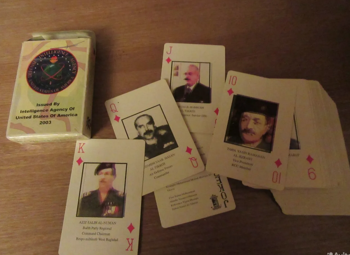 Игральные карты с лидерами Ирака, которые получали солдаты США во время вторжения в эту страну. 100 руб.
