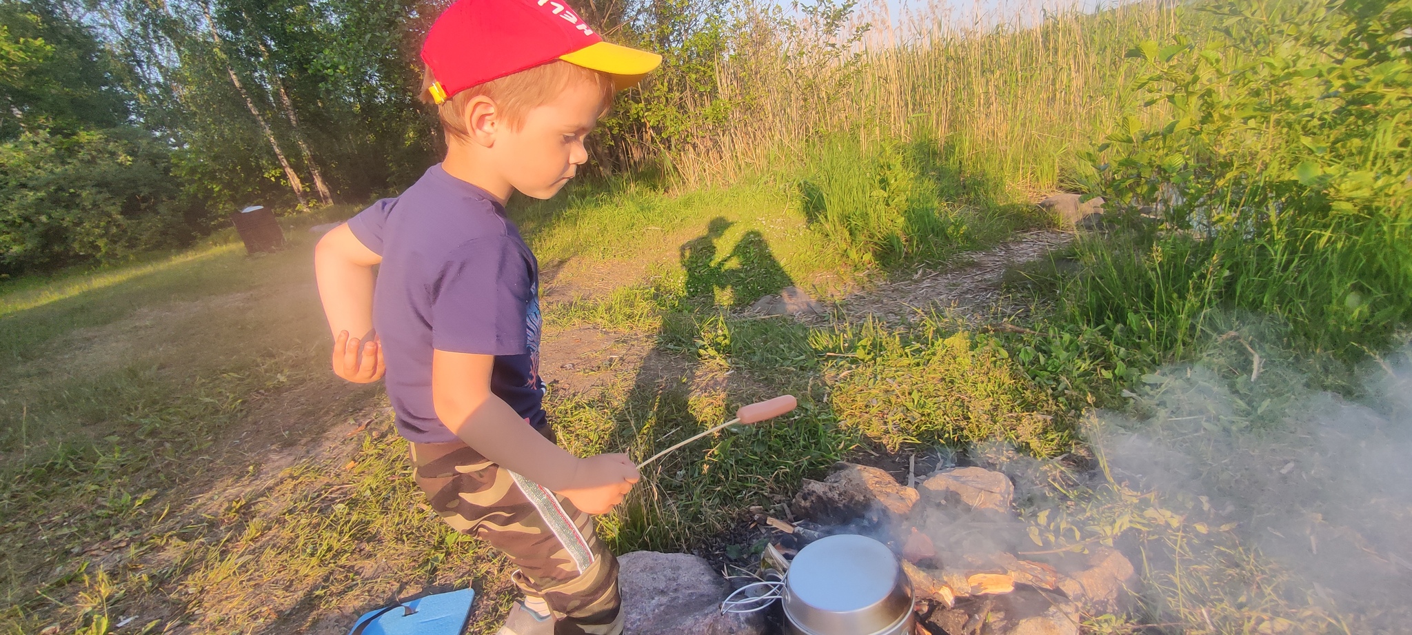 Пожарили сосисок, Сашка ещё пожарил маршмеллоу.