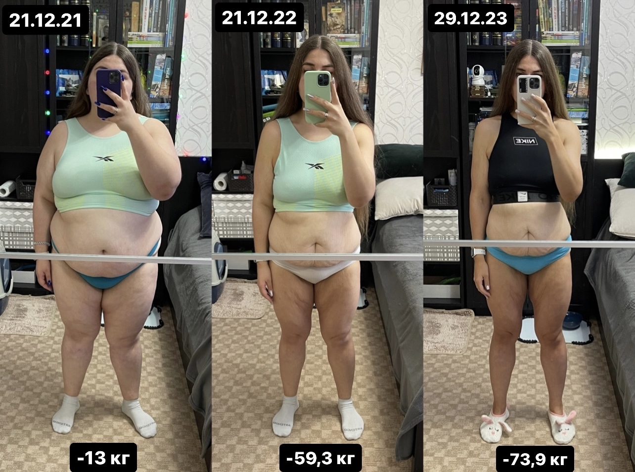 Начинала худеть с веса 141,1 кг, но фотографии в нижнем белье с таким весом нет(в одежде выкладывала в постах до этого). Фотографии делались для себя, изначально я вообще не планировала ничего подобного выкладывать. Да и сейчас мне тяжело это показывать, но вот решилась)
