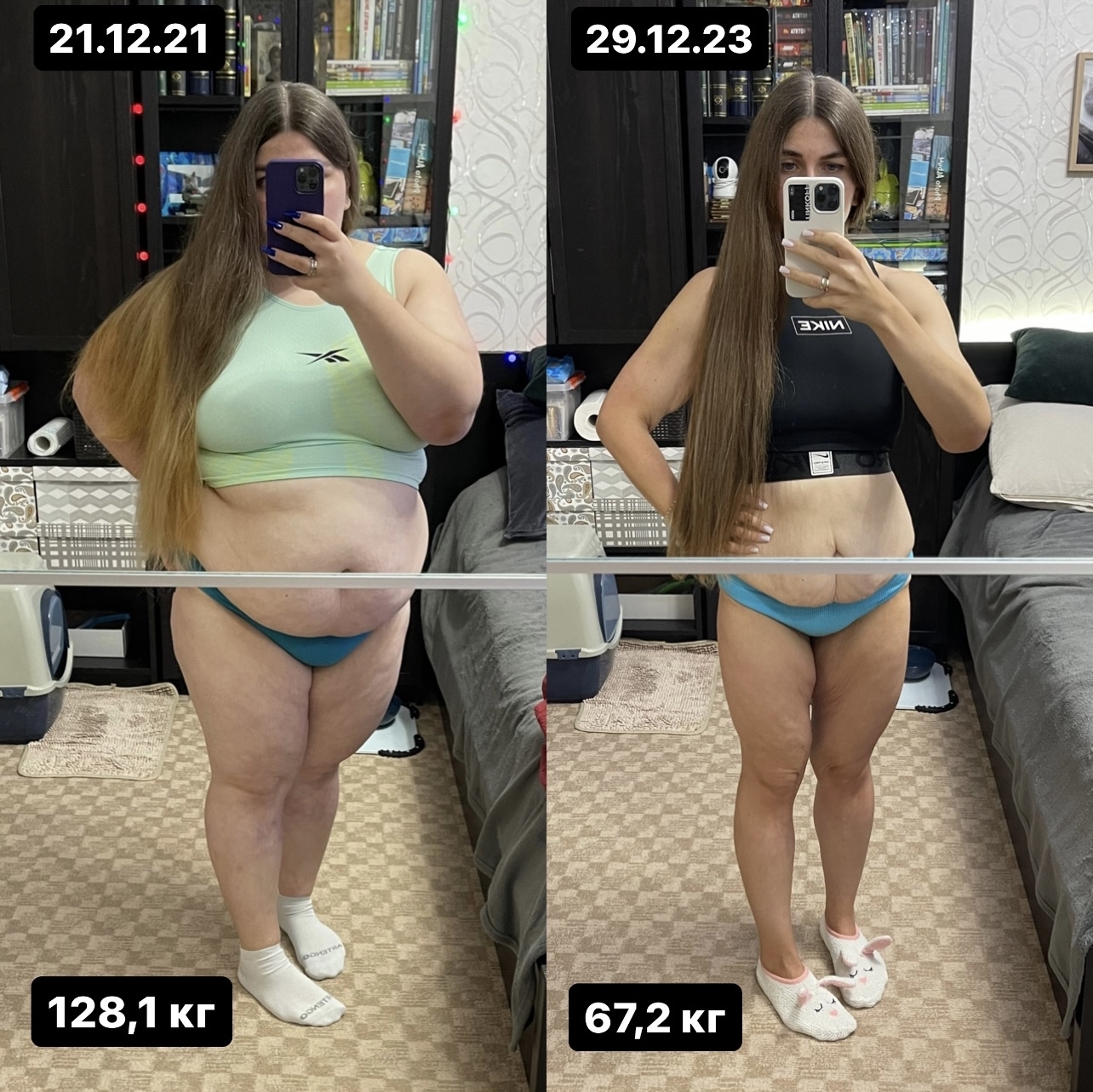 С 141,1 кг в 2021 году до 64,2 кг сегодня. Последний год вес +- одинаковый. Продолжаю ходить в зал на тренировки, слежу за питанием и все записываю.
