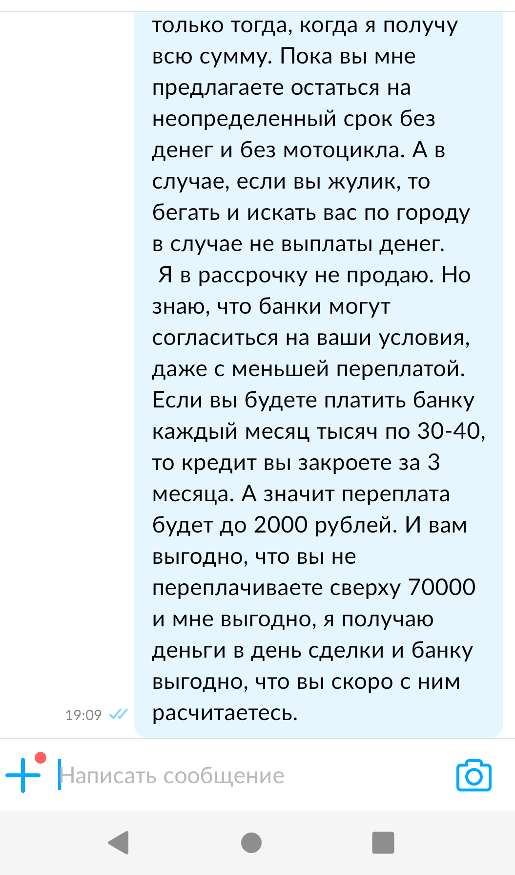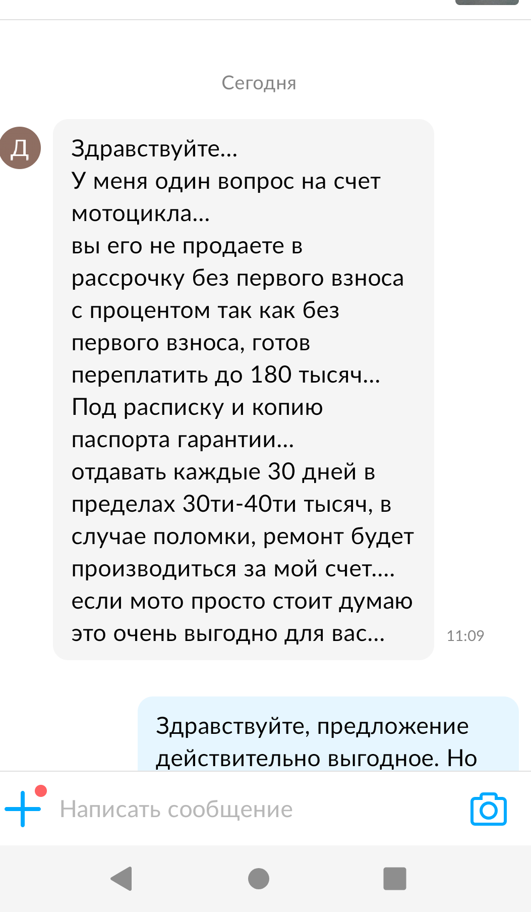 Продаю мотоцикл, много интересных предложений получил. Одно из них