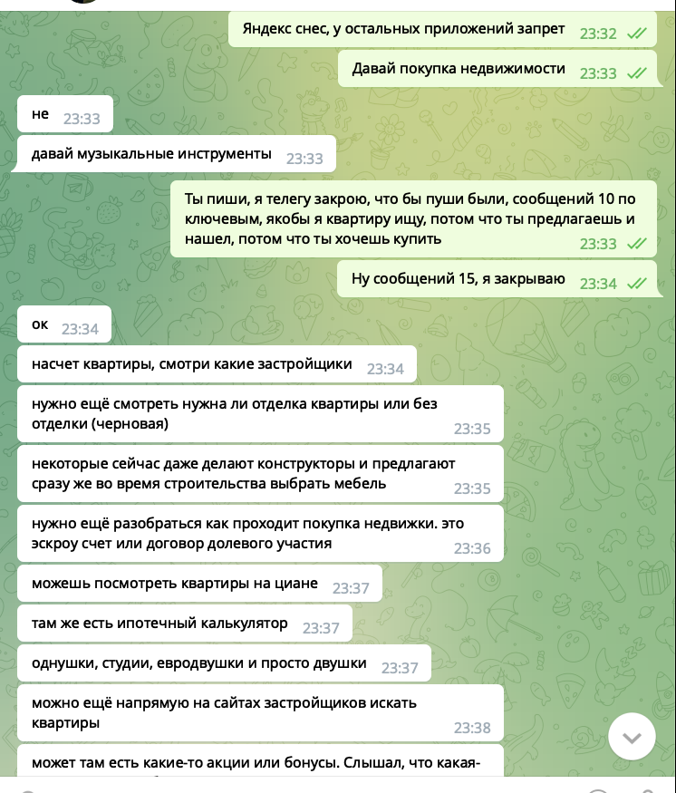 В переписке активно используем ключевые фразы. На этот раз тема с недвижимостью, покупка квартиры.