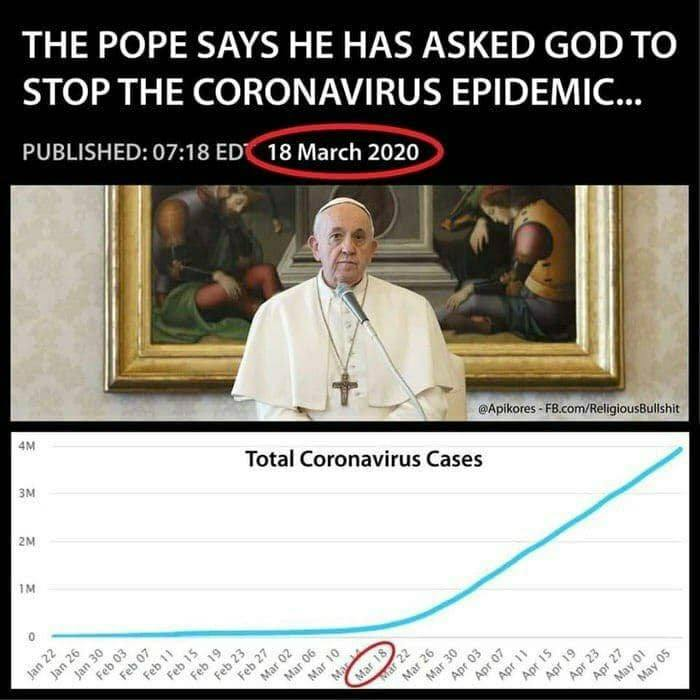 Папа римский говорит, что просил бога, чтобы он прекратил эпидемию коронавируса