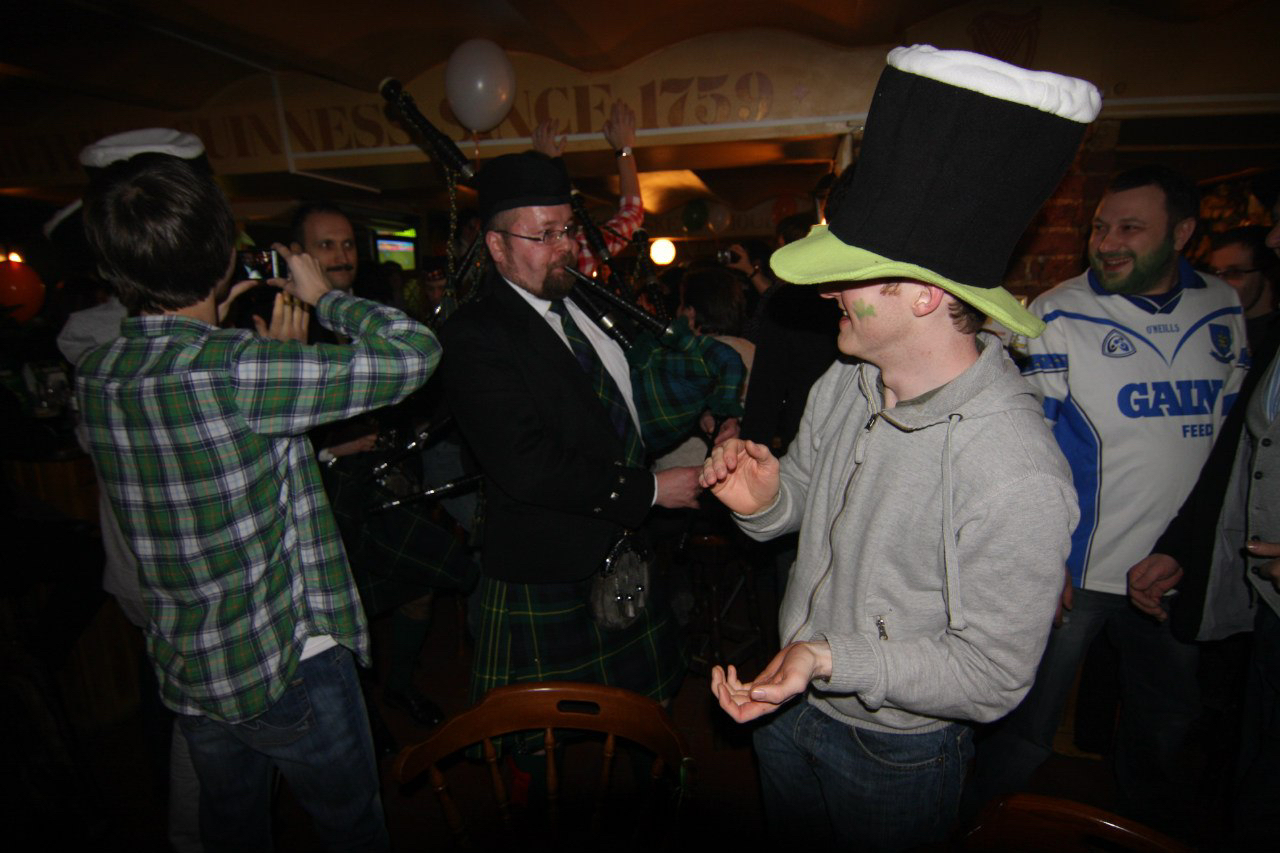 У нас с друзьями есть традиция, каждый год мы… ходим в какой нибудь паб праздновать День Святого Патрика, самый веселый праздник в году, когда мы напиваемся Гиннеса и танцуем под волынки. Каждый год, мы брали Ирландский флаг, смешные шляпы и бронировали какой нибудь нормальный Паб в центре Питера.