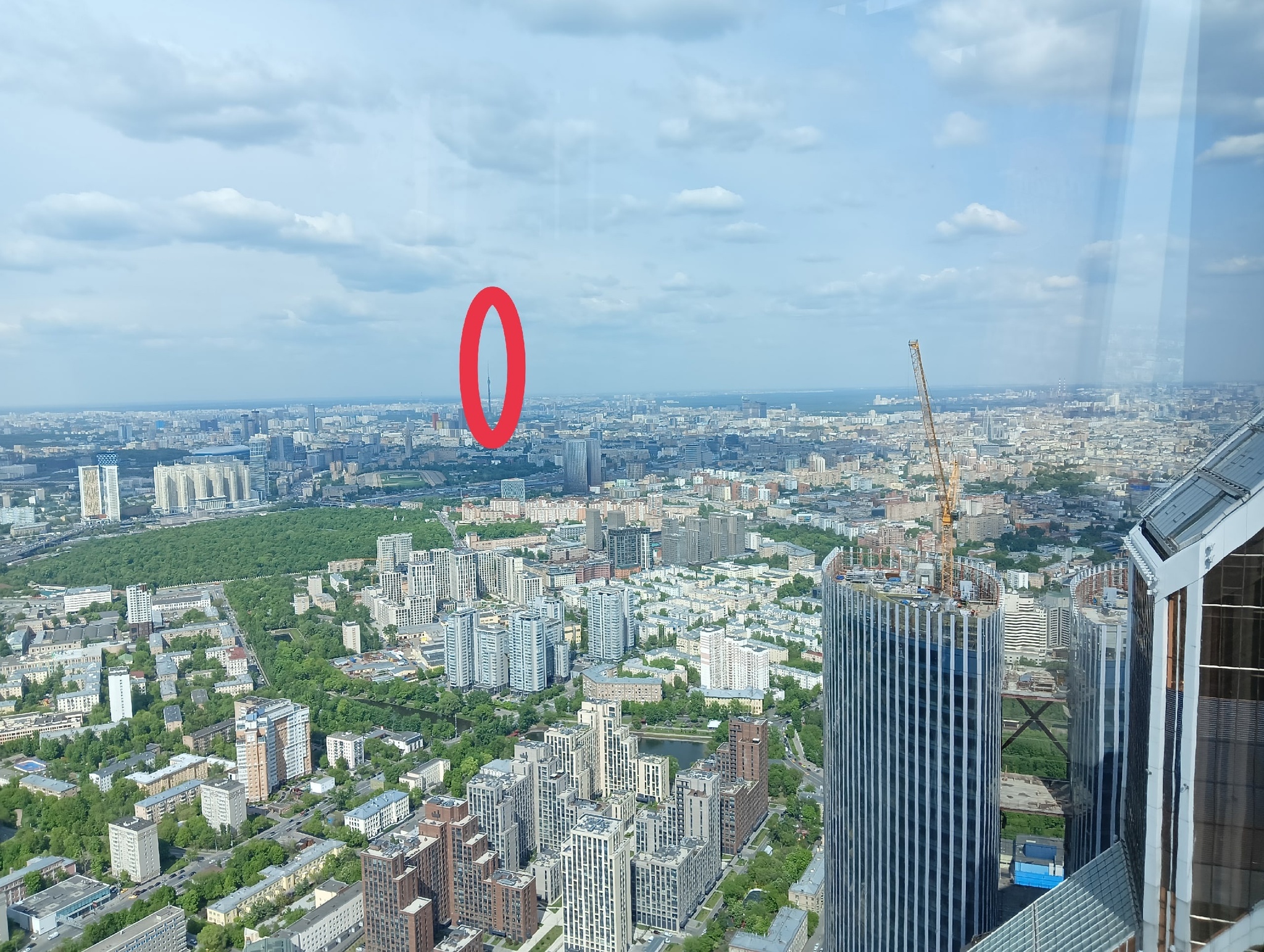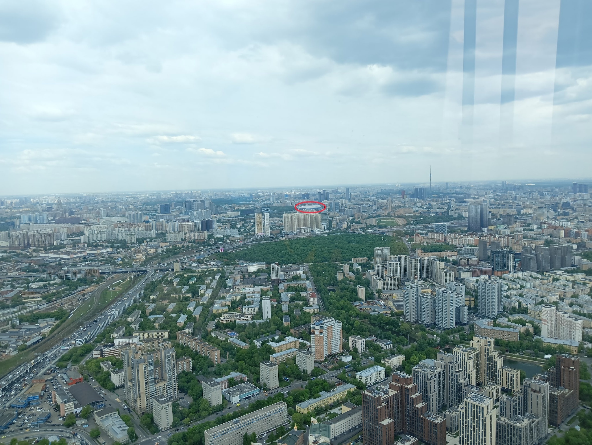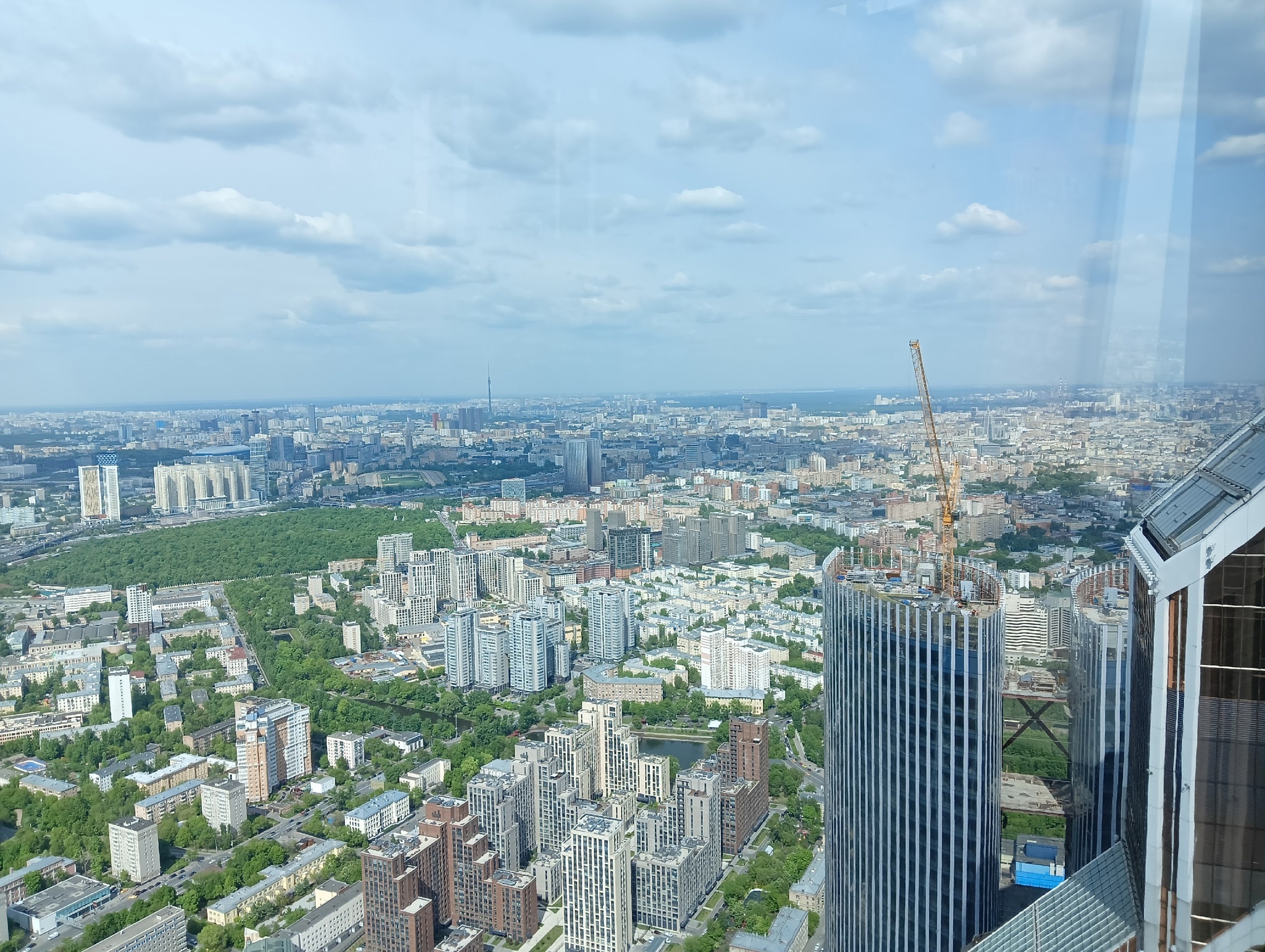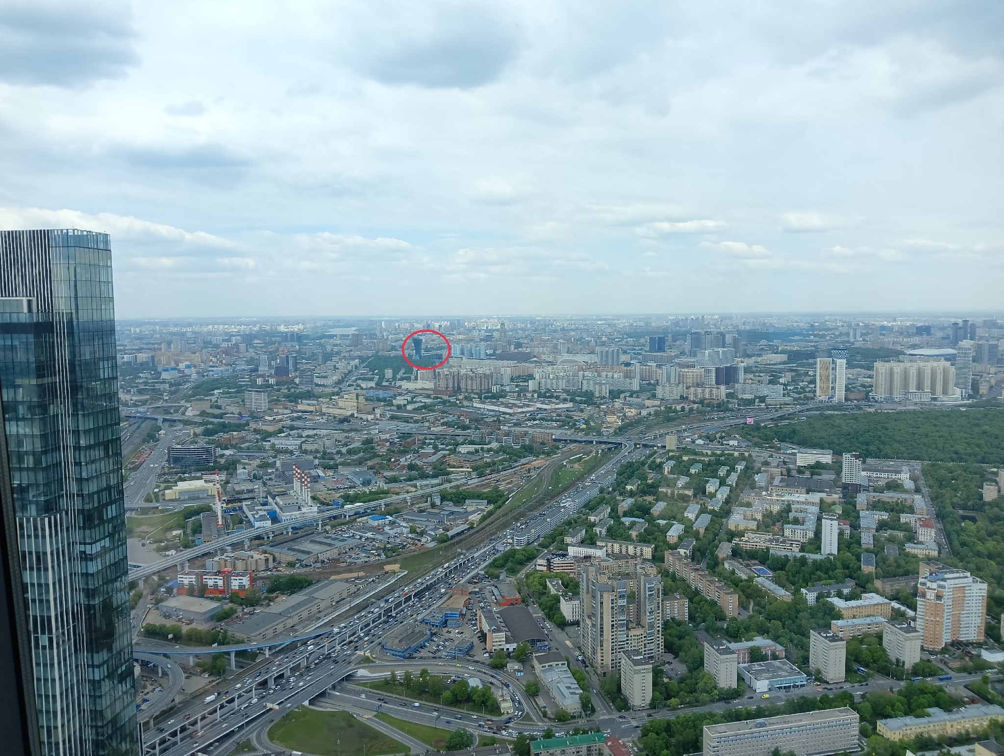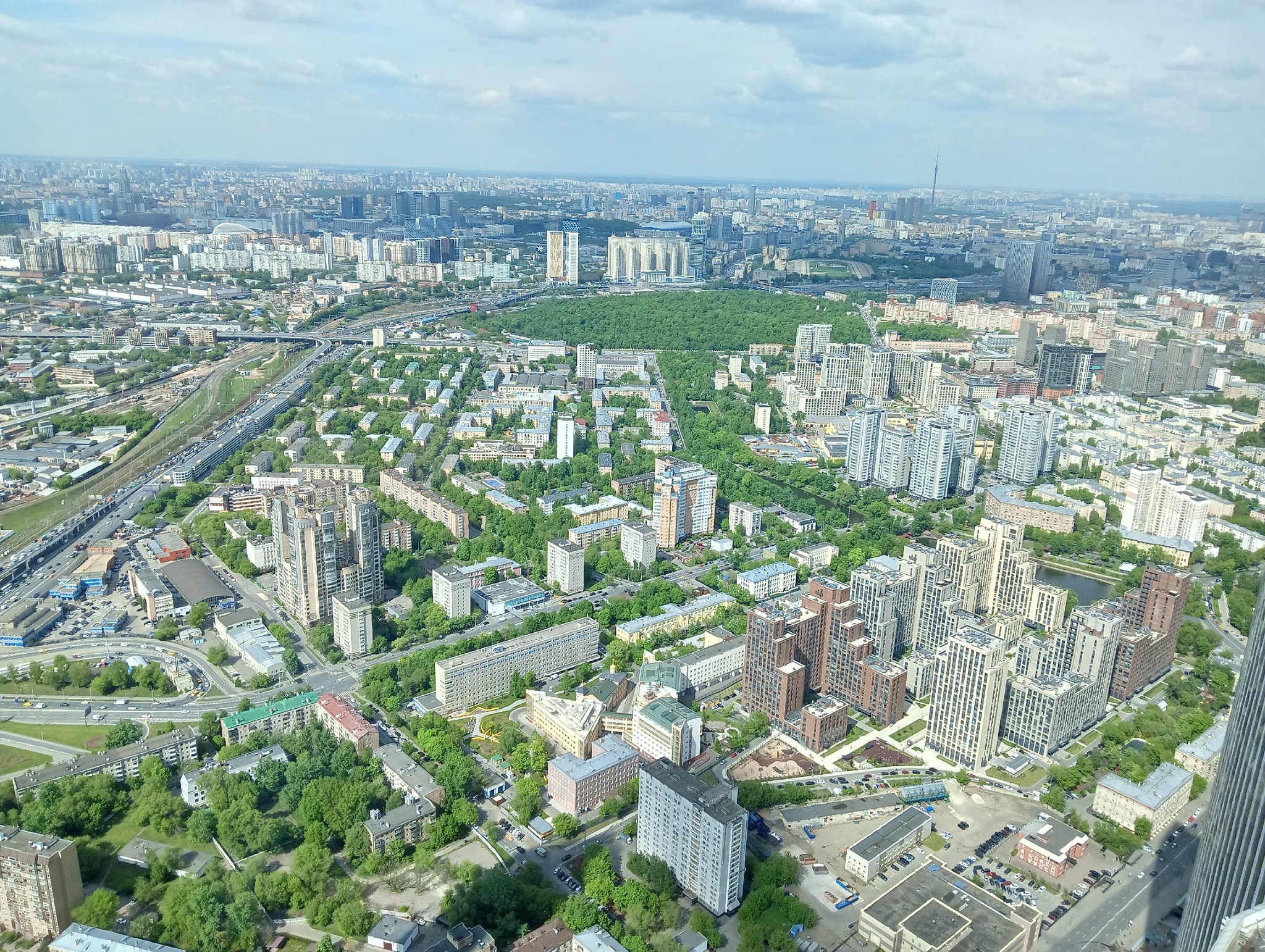 Автомобили, поезда, люди, дома - все, словно игрушечное. Видно не только всю столицу, но и соседние Химки.