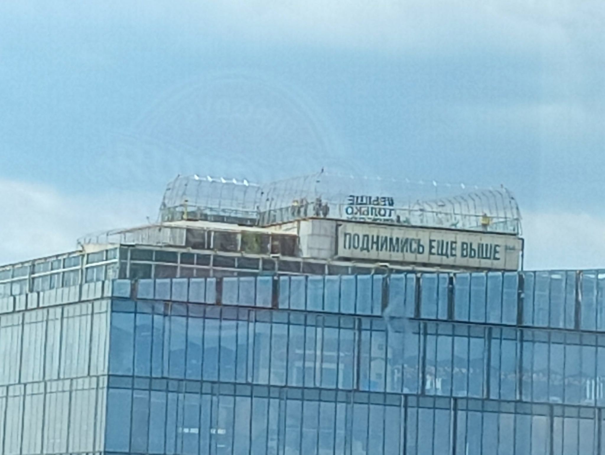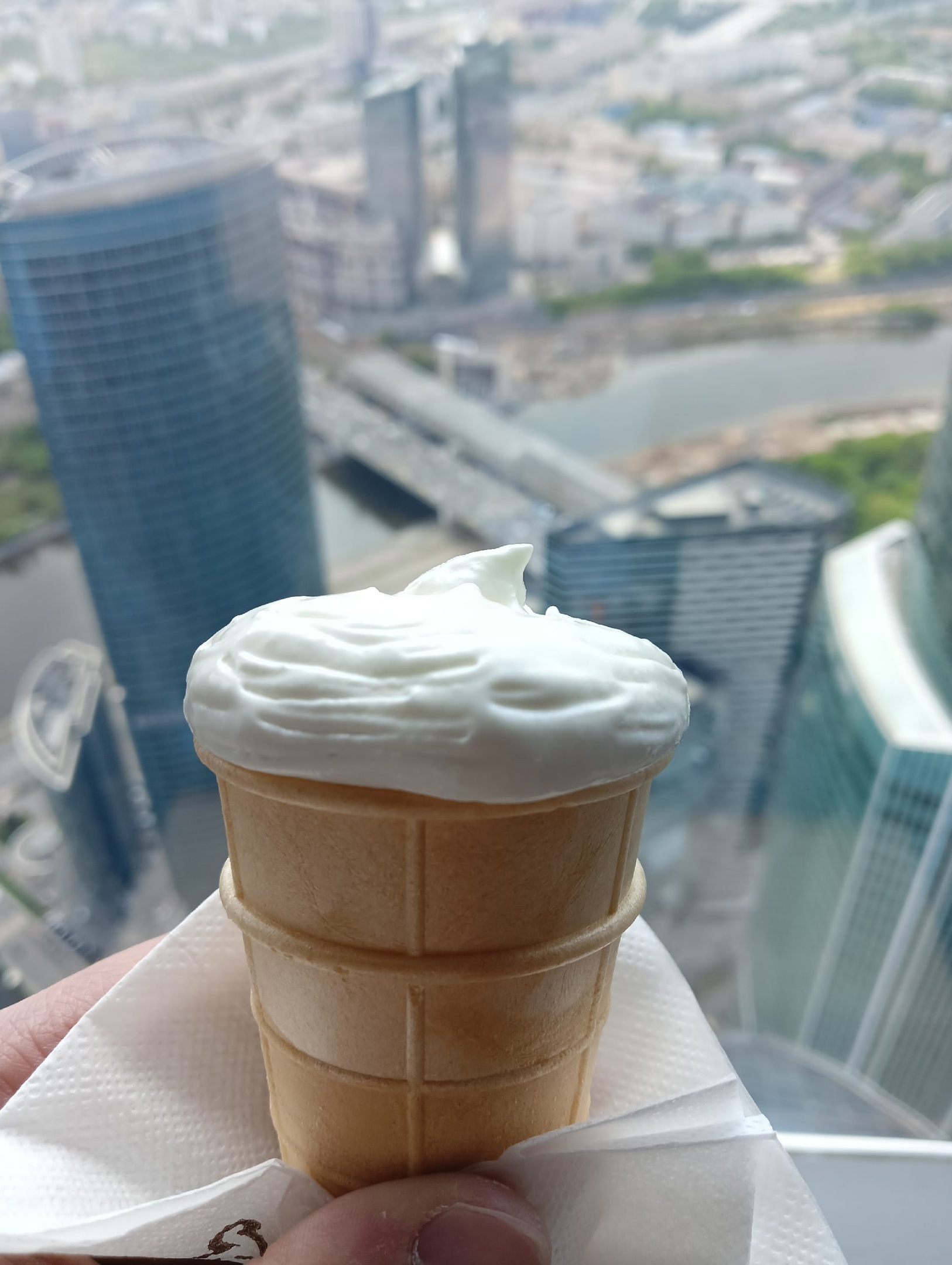 На башне "Меркурий" на огромной высоте находится балкон, но, по словам экскурсовода, туда практически не выходят из-за сильнейшего ветра