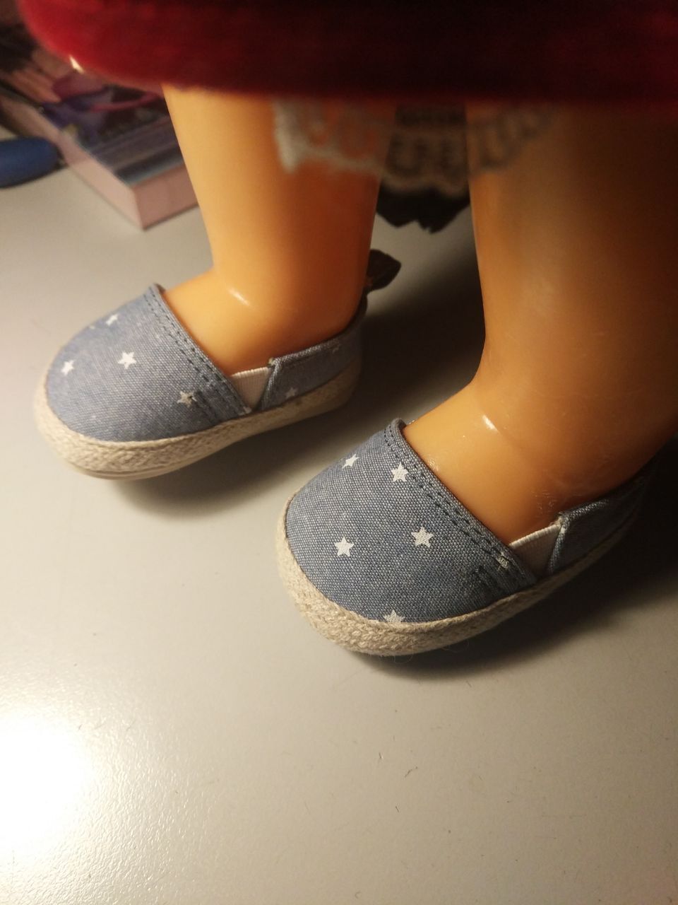 Сама я ей сшила только панталоны с кружевным подъюбником, платье и обувь посчастливилось найти в секонд хендах. Красный бархат прекрасен на ней, а тапочки сели как влитые и стоили всего сотку. Лицо подкрасила акрилом, царапинки малость заполировала.