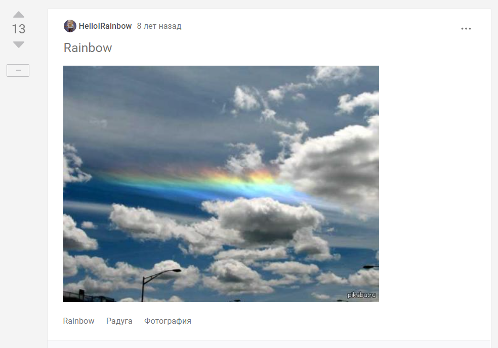 Давних 8 лет назад на просторах "свежего" я наткнулся на ничем не примечательный пост. Ну фотка радуги, ну дичь, чего хотел-то, это ж свежее.