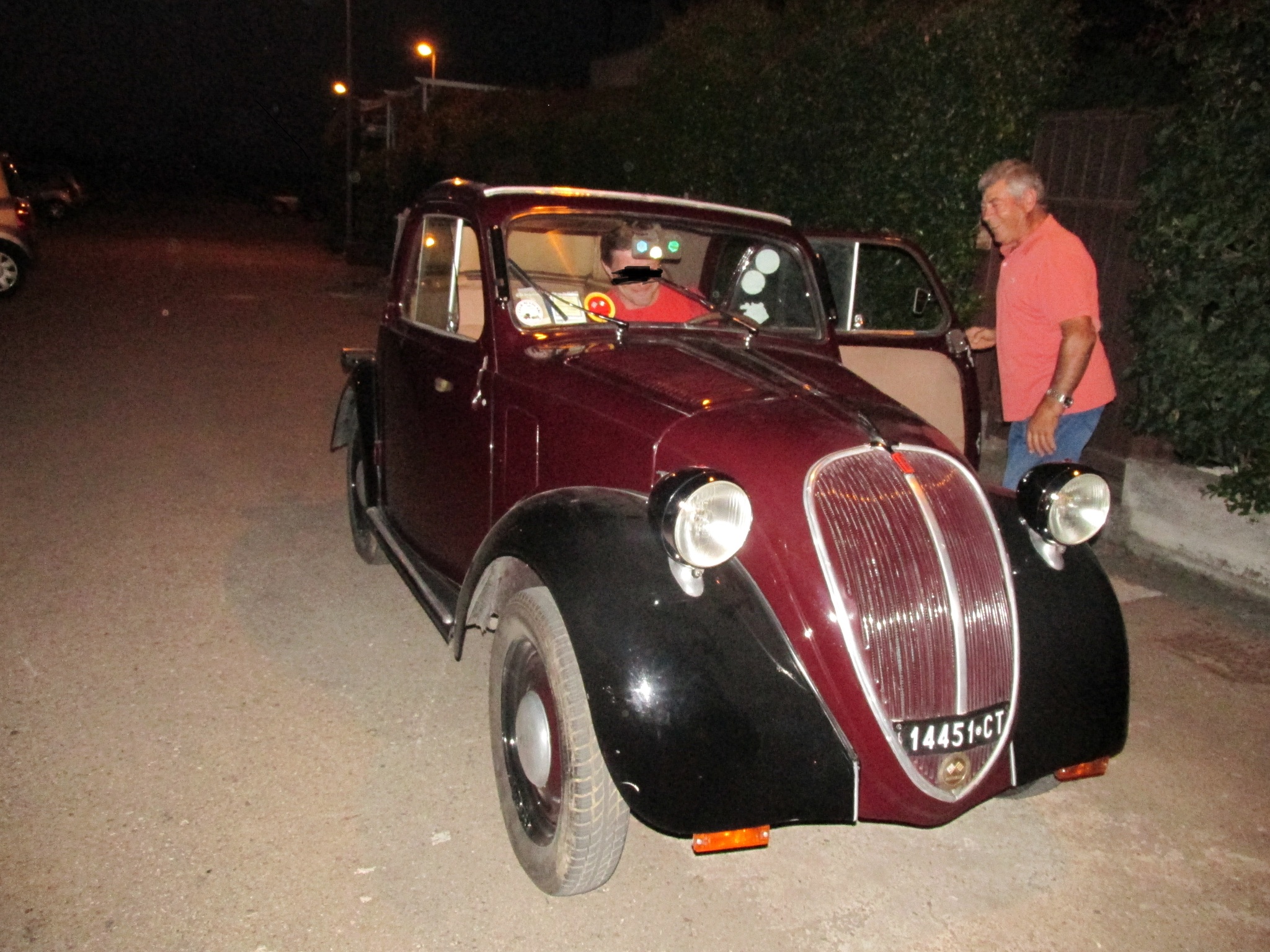 Но дед на этом не успокоился. Через неделю он пригнал Фиат Балилла 1937 года и просто молча отдал мне ключи. АААААА. УУУУУУ. Ну в общем да. Я как мог его одарил. Банка красной икры и расписная разделочная доска для его сеньоры.