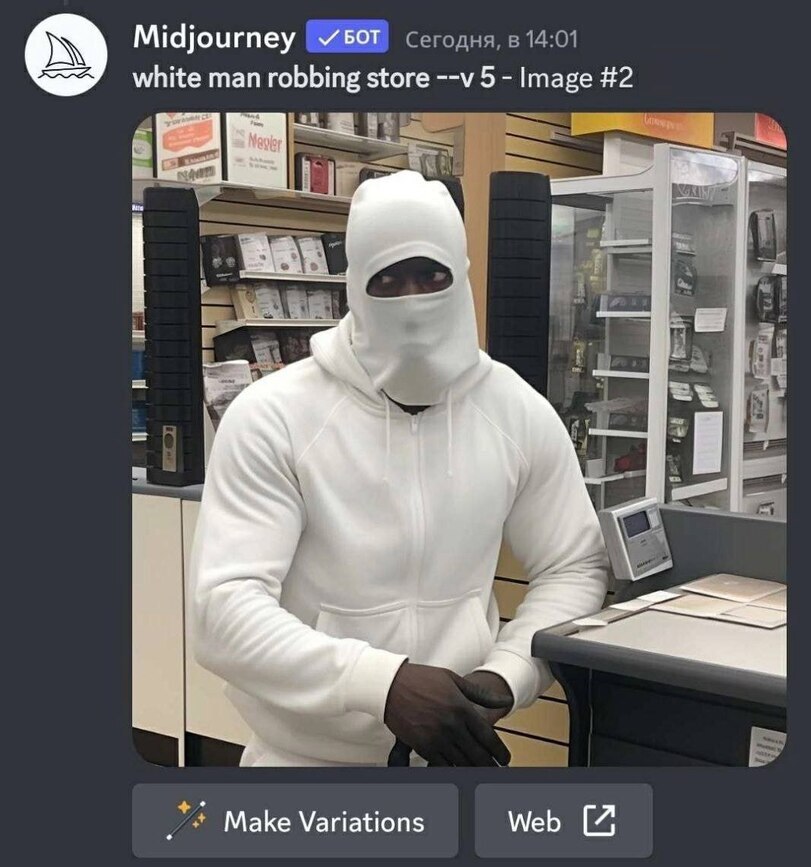 Нейросеть попросили нарисовать, как белый человек грабит магазин