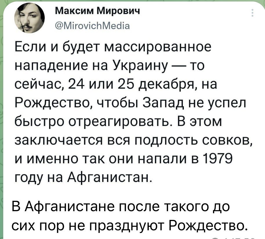 UPD Последняя фраза из ответов на твит https://twitter.com/MirovichMedia/status/1474330350545518609