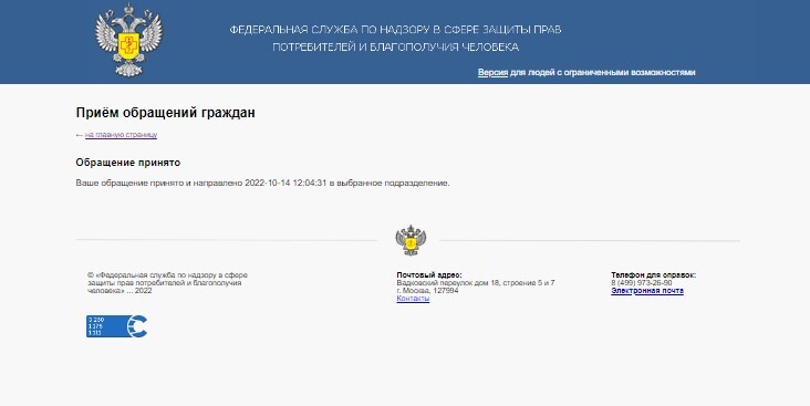 Кстати жалобу вы можете подать здесь: https://petition.rospotrebnadzor.ru/petition/
