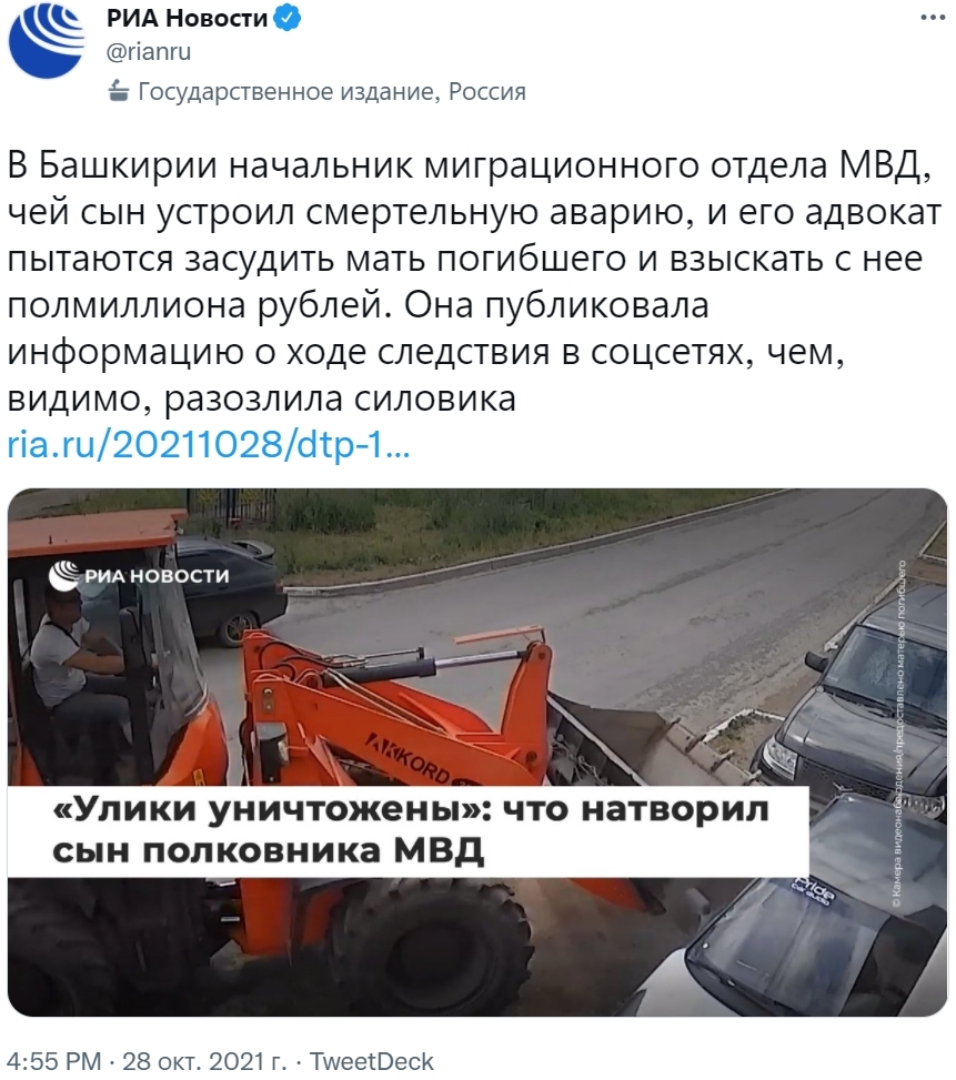 Светлана тоже не бездействует — добивается ужесточения приговора и снятия отца преступника с должности. "Во-первых, очень странно, почему Верховный суд Башкирии проигнорировал показания таксиста, изобличающие Акимова-младшего, — отмечает Макушев. — Также есть вопросы к следователям, даже не попытавшимся восстановить неожиданно "испортившийся" жесткий диск. Во-вторых, Акимов-старший, как действующий сотрудник МВД, не имеет права заниматься коммерцией, однако доверенность на фирму оформили на него. Более того, согласно документу, он может представлять интересы компании в миграционной службе, где возглавляет отдел".