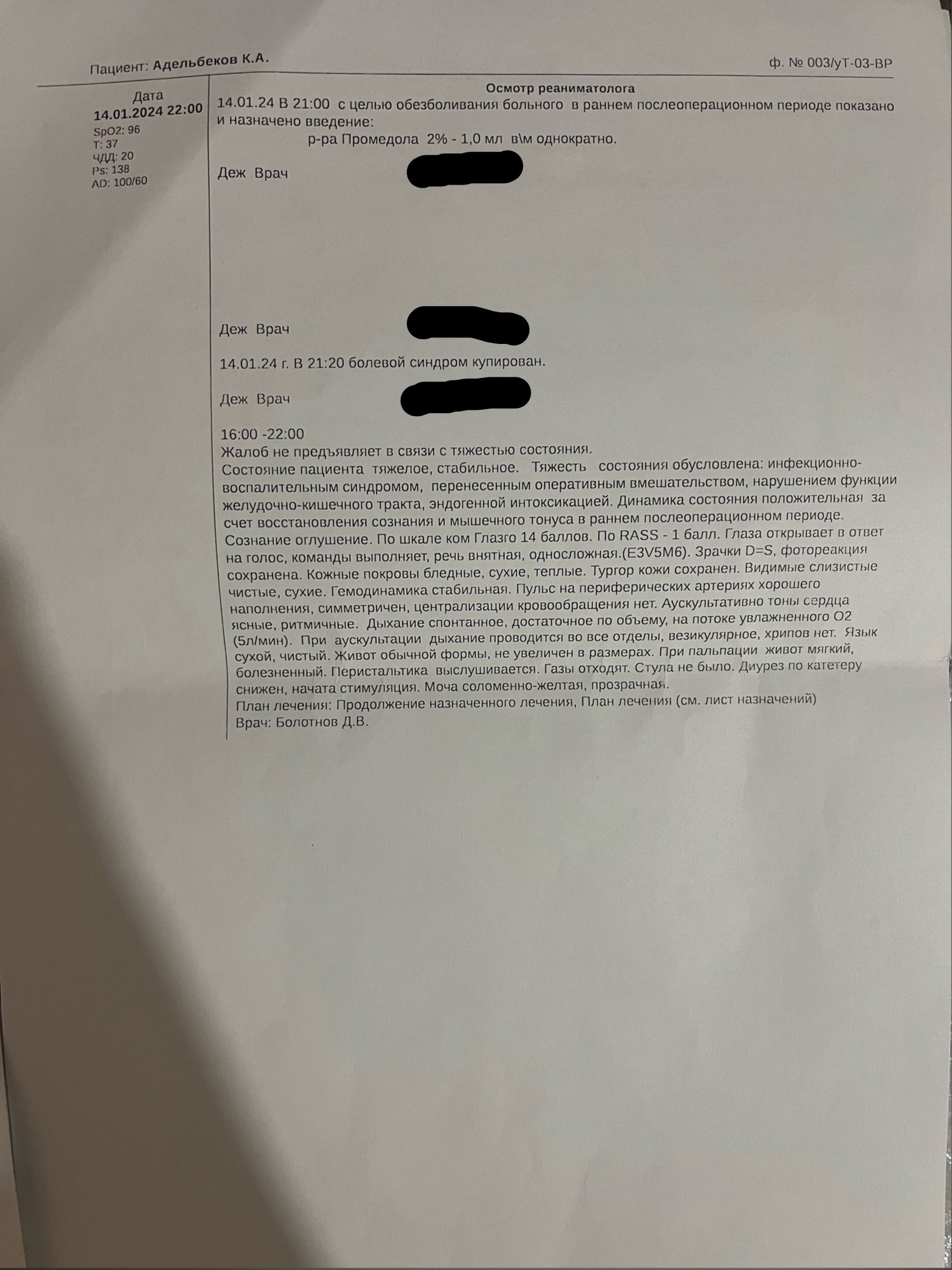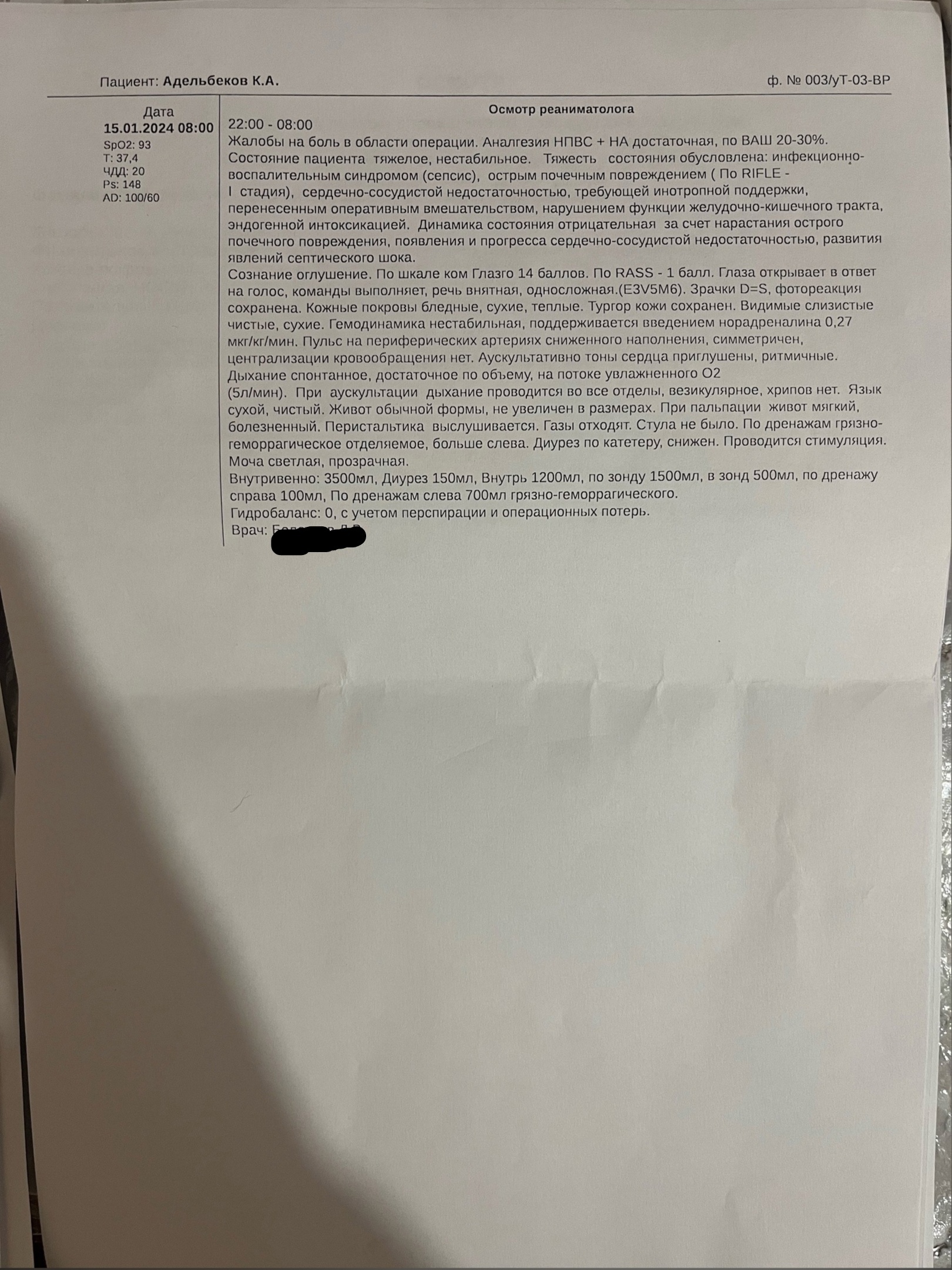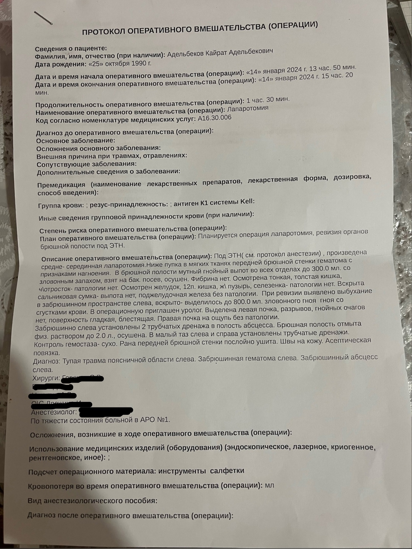 Крик души! Мой муж Адельбеков К. сотрудник ДПС Варненского отдела полиции. В начале ноября 2023 года мужа стали прижимать на работе, так как он "оформлял не тех людей", так же начались угрозы от "этих людей". Люди эти очень влиятельные в нашем районе, имеют связи по всей области. В это же время мужу стали предъявлять то, что он якобы украл сено, что в конце концов не подтвердилось (заявление в полицию по краже было написано "этими же людьми"). Видимо их не устроило, что мужа не посадили за кражу сена и 13 декабря 2023 года его задержали якобы за получение взятки (все на словах). Муж вину не признал, на него оказывали давление сотрудники ГУ, не допустили к нему адвоката. Несмотря на все нарушения, мужа поместили в СИЗО г. Магнитогорска. И там от него видимо не отстали, посещали все те же сотрудники, которые его задерживали, из ГУ, давили на него. С 29 декабря 2023 года муж стал жаловаться на здоровье, только 11.01.2024 его отвезли в больницу и тут же вернули в СИЗО, сказали, что ничего серьёзного, застудил почки. А 14.01.2024 мужа госпитализировали с подозрением на перитонит, который подтвердился. Оказалось у него обнаружили тупую травму в области левой почки. Мужа экстренно прооперировали, сейчас состояние ухудшилось из-за сепсиса. Со слов врачей данное состояние мужа повлекли травмы в виде множественных ушибов мягких тканей в области спины, живота и почек которые нанесены ему около 2 недель назад. 16.01.2024 года мужа посетила его мама и он сказал ей что его избили! Мама ужаснулась его состоянием, со слов матери мой муж в данное время «живой труп». Я пойду до конца, надеюсь хоть сейчас правоохранительные органы начнут нормально и не предвзято работать.