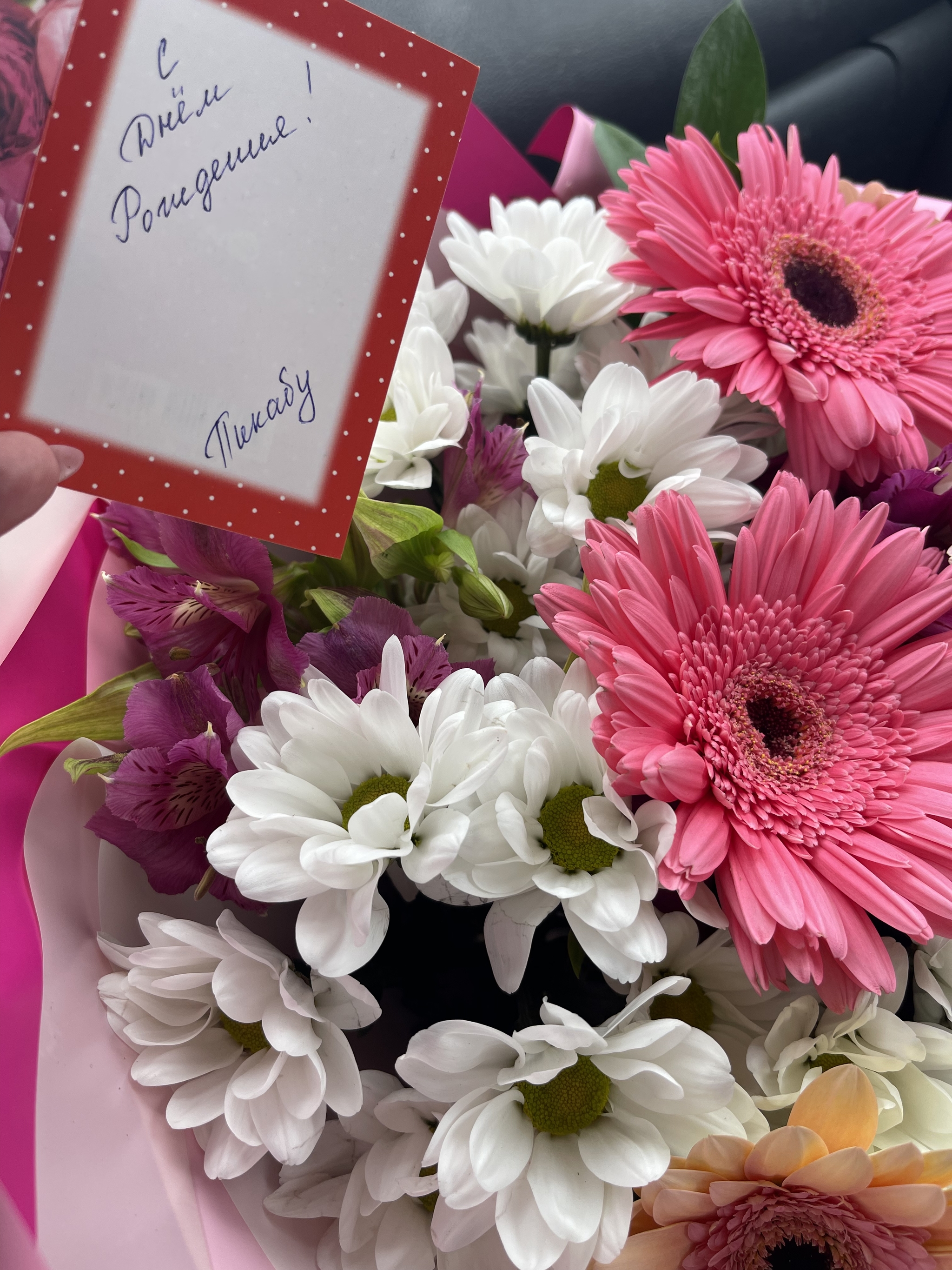 Он пожимает плечами- там в открыточке написано. Под маленькой посеребрённой прищепкой - открытка, там всего несколько слов: «С днём рождения. Пикабу». Кто ты, славный, милый, добрый человек подаривший мне сегодня не букет-целый мир! Пусть Бог хранит тебя и твою семью.