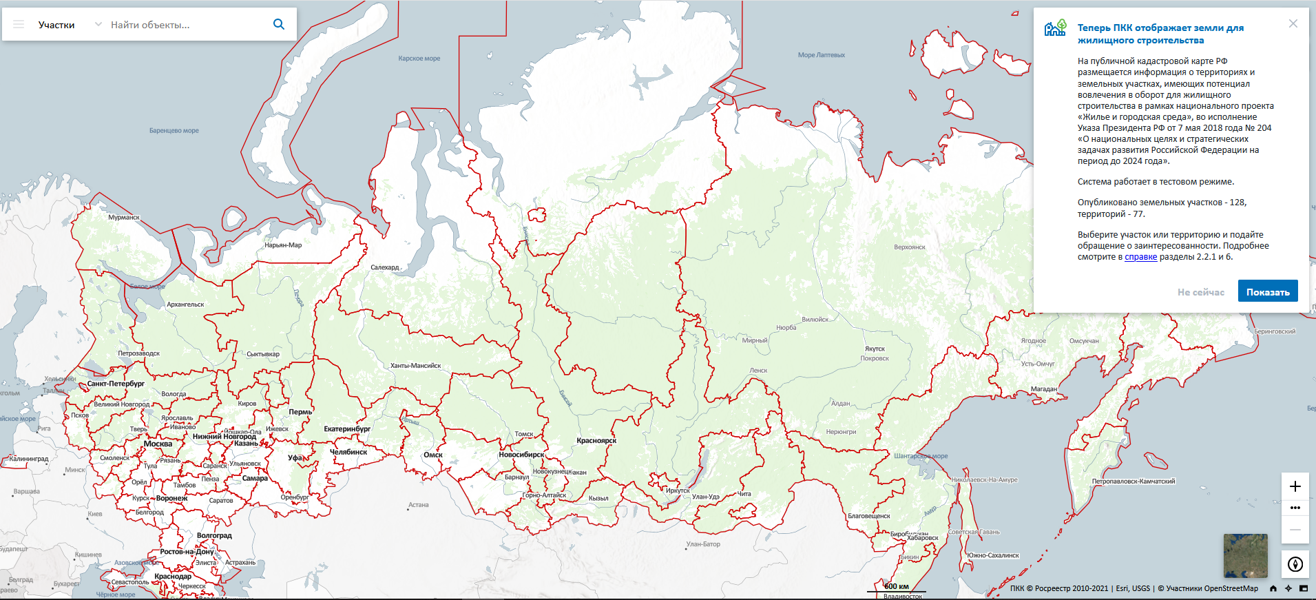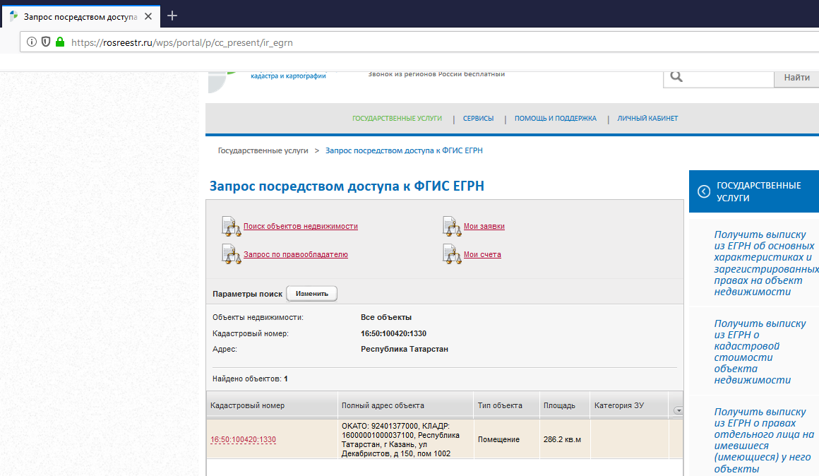 Нажимаем раздел «Поиск объектов недвижимости» и видим вот это:
