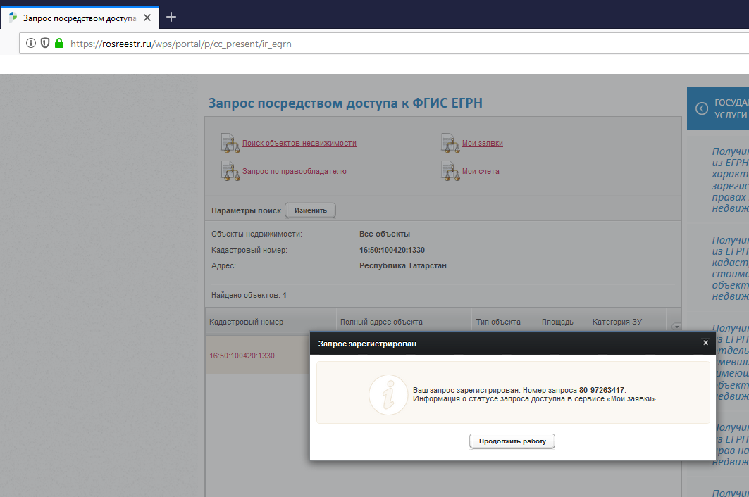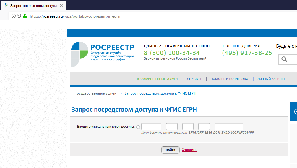В окне вводим код доступа (его получаем в личном кабинете Росреестра, но об этом позже) и попадаем вот на такую страницу: