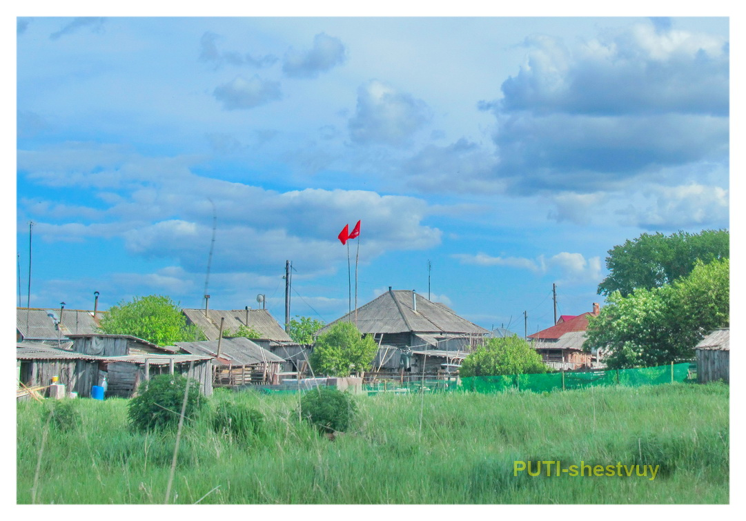 Побродив еще немного в интернетах, можно наткнутся на фотоотчет путешественника, проезжавшего через село Юлдус вскоре после 9 мая в 2019 году. И что же мы видим - Знамя Победы на участке!