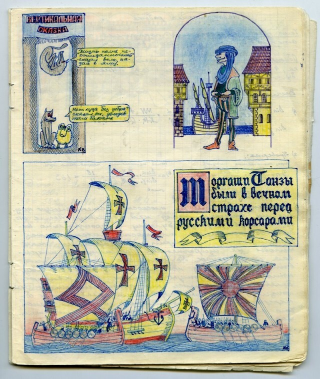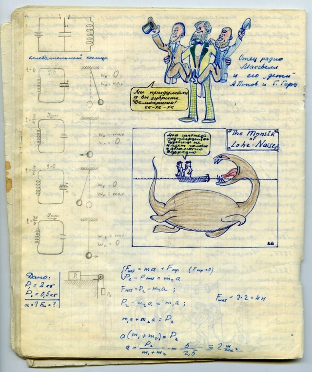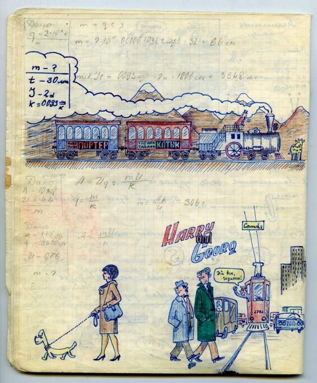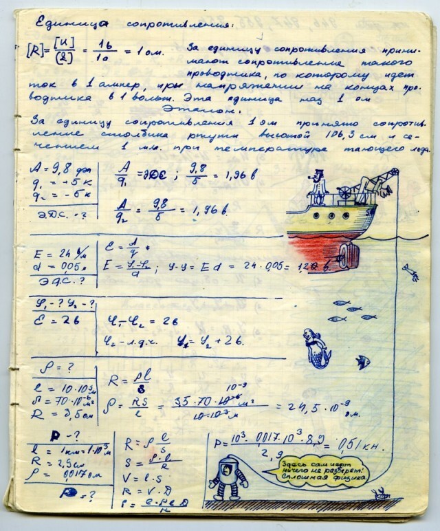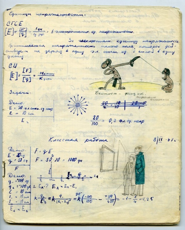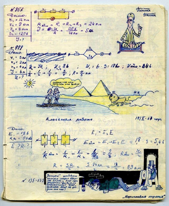 Наверное каждый из нас, будучи школьником, хоть раз да подрисовал в учебнике какому-нибудь усы. У меня в семье первое место по этому развлечению на уроках, принадлежит моему отцу. Был он человеком творческим, и разносторонним, и так сложилось что занесла его судьба в г. Черноголовку в Подмосковье, в школу с физико-математическим уклоном. Учебники он не портил (наверное), но на тетради отыгрался. Было это где-то в 1967-1969 г.