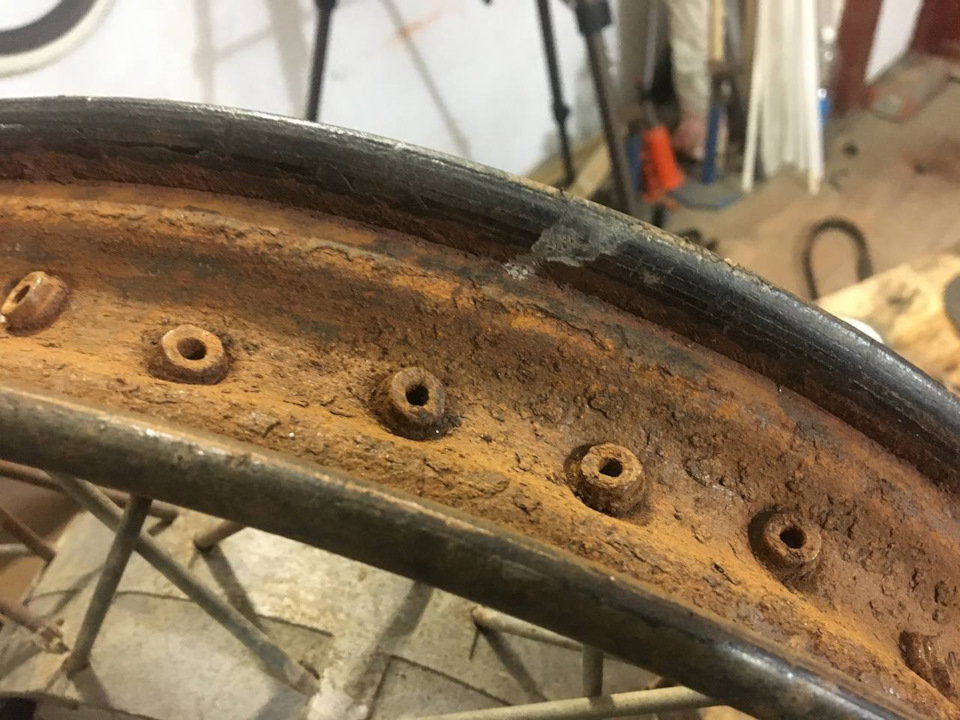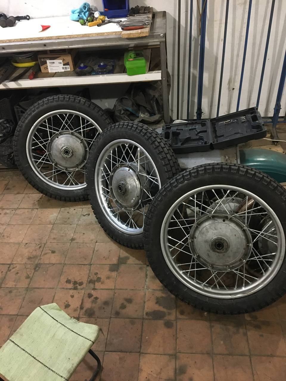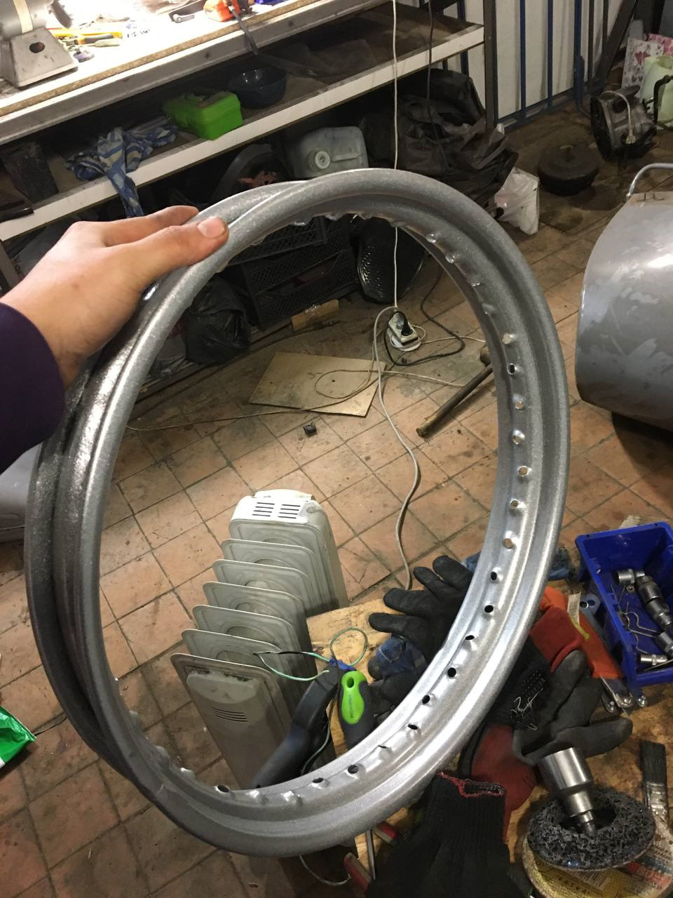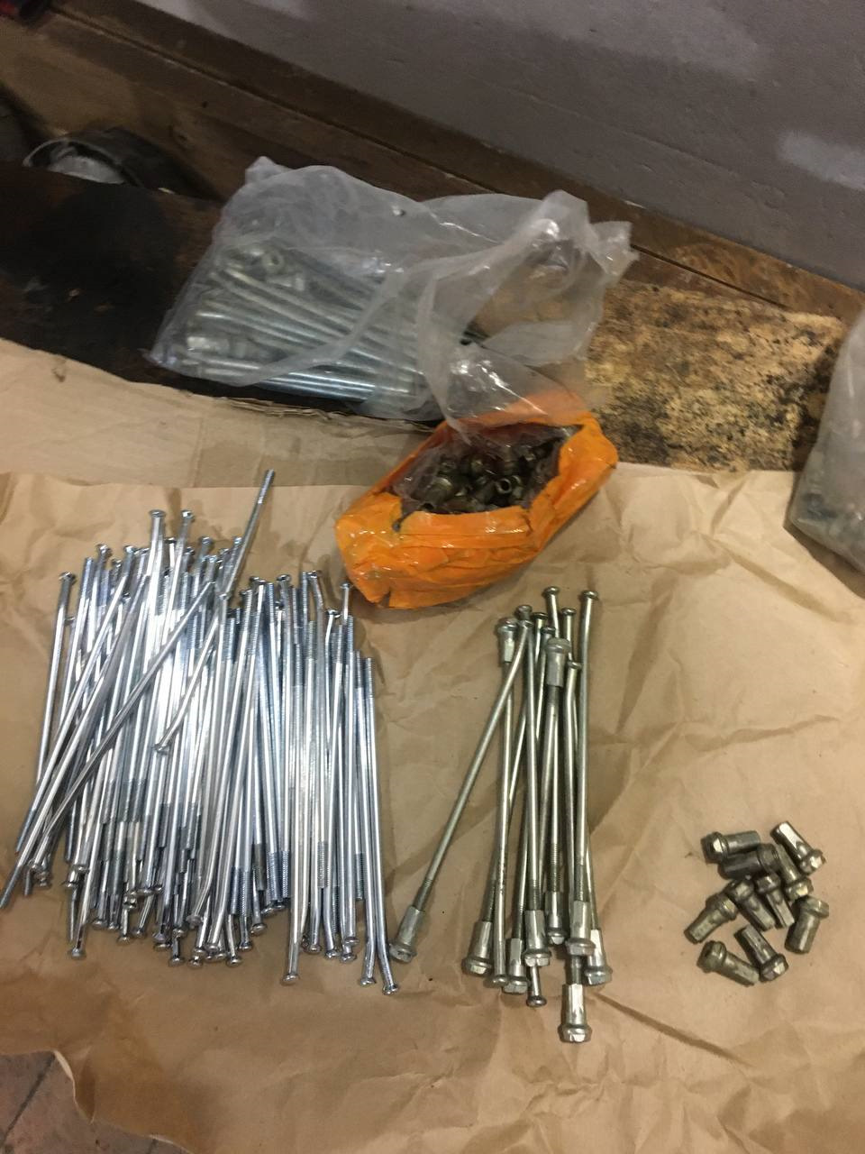 Дальше в ход пошел дербан туристовских колес, все было разобрано, спицы были по максимуму сохранены (не потому, что мы топим за сохранение оригинала, а потому, что они достаточно дорогие) в итоге все равно были куплены все гайки спиц под головку, а не шлицевую отвертку и комплект запасных спиц.