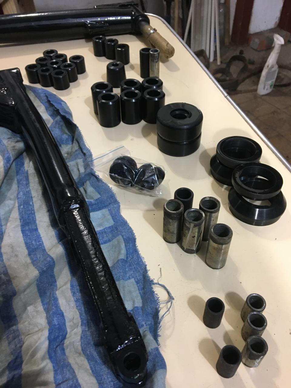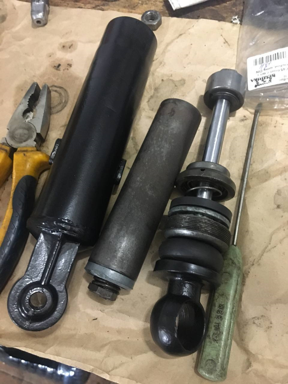 Амортизаторы были разобраны, отпескоструены, покрашены в порошок, собраны на новых штоках и современных комплектующих (упругая и мягкая резина). Но потом я об этом пожалел. В будущем планирую переходить на вкладыши на основе амортизаторов ВАЗ и вам рекомендую, меньше мороки с этим амортизаторным бутербродом.