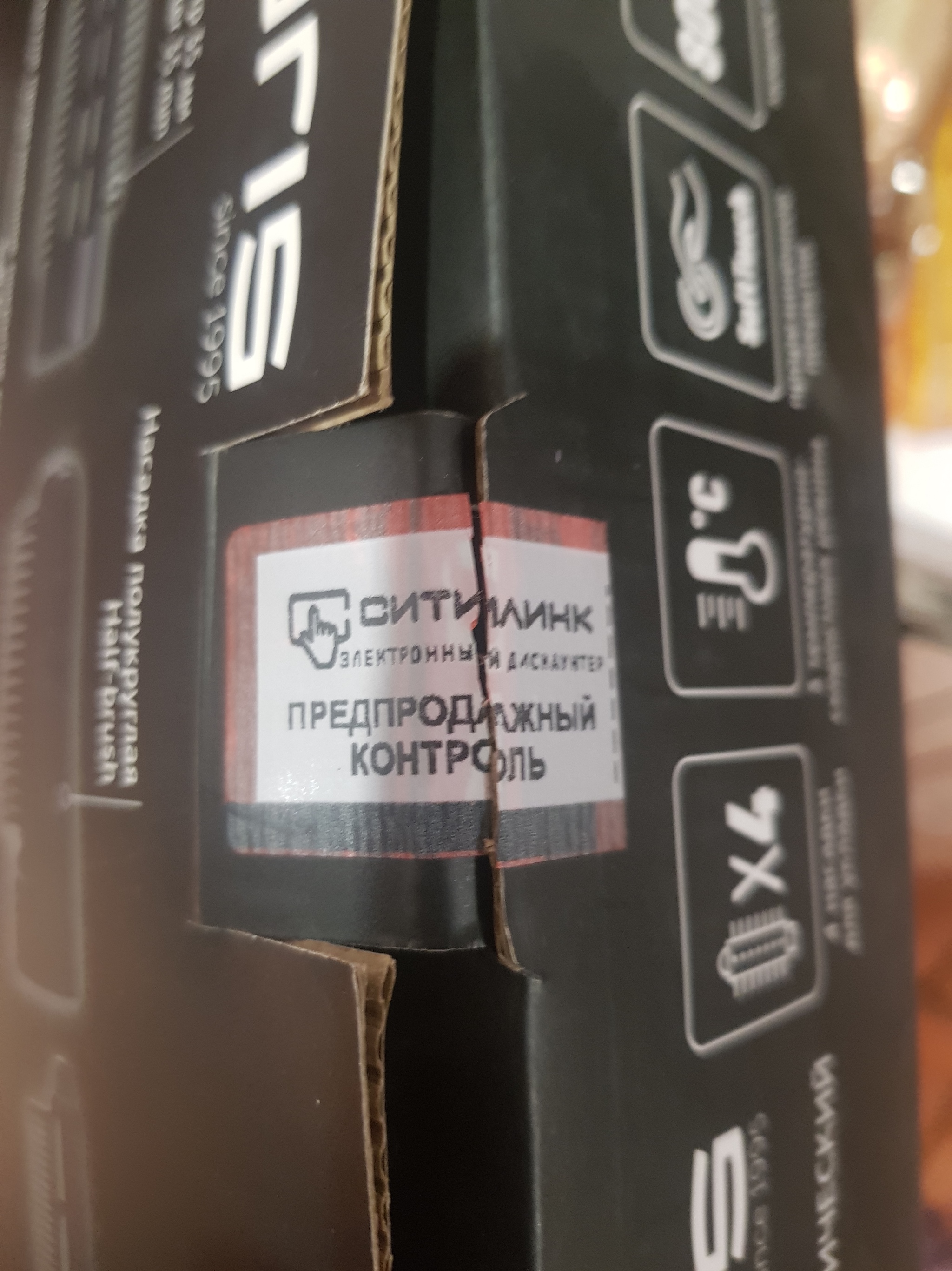 Эти педики стали стикеровать заведомый брак, либо возврат. За 1 месяц два случая только у меня, сначала продали НМЖД на 3Тб который отказал через сутки, а при диагностике показал 3 месяца работы, а сегодня вот щетка-фен. Сразу не хотел брать, но думаю 1.5 к рублей, пофиг. Дома оказалось, что он не работает.