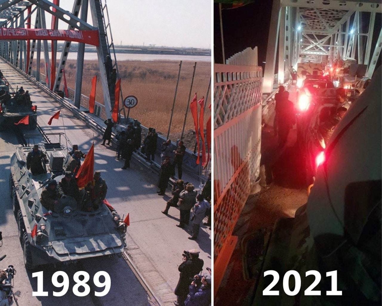 Выход советской армии и выход остатков афганских вооруженных сил. Мост один и тот же - через реку Амударья.