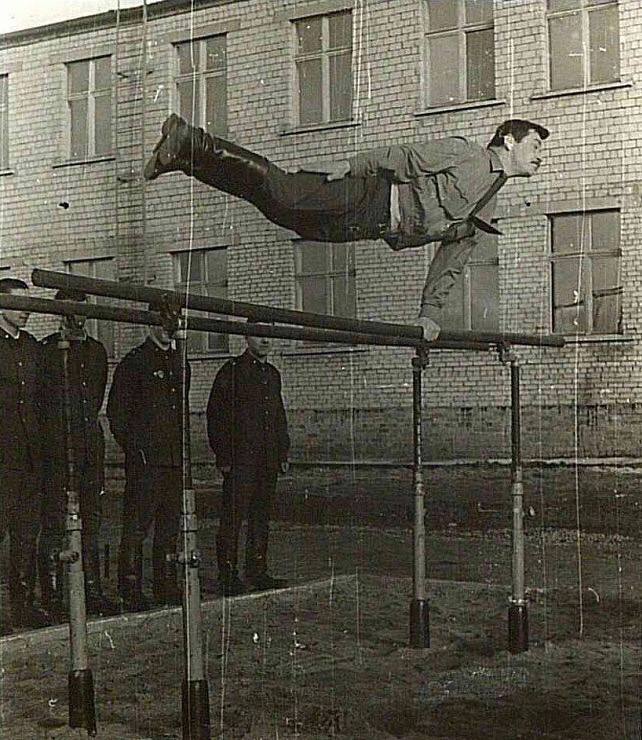 Когда последний из них сдался, старшина убрал одну руку за спину и продолжил отжиматься на одной руке.