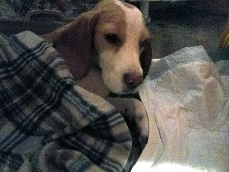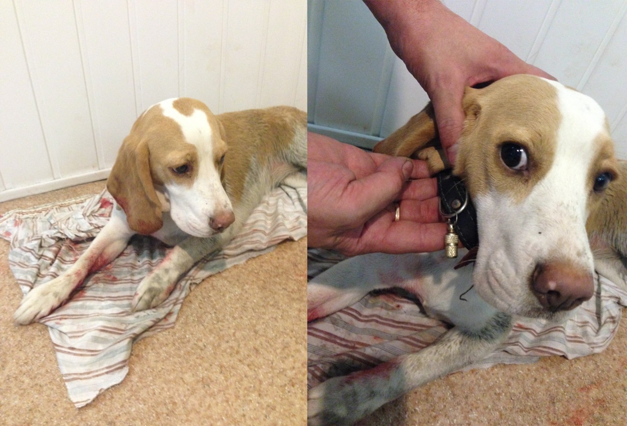 - Мы тут подобрали собаку, бигль, с клеймом. Её сбила машина. Это ваша собака?