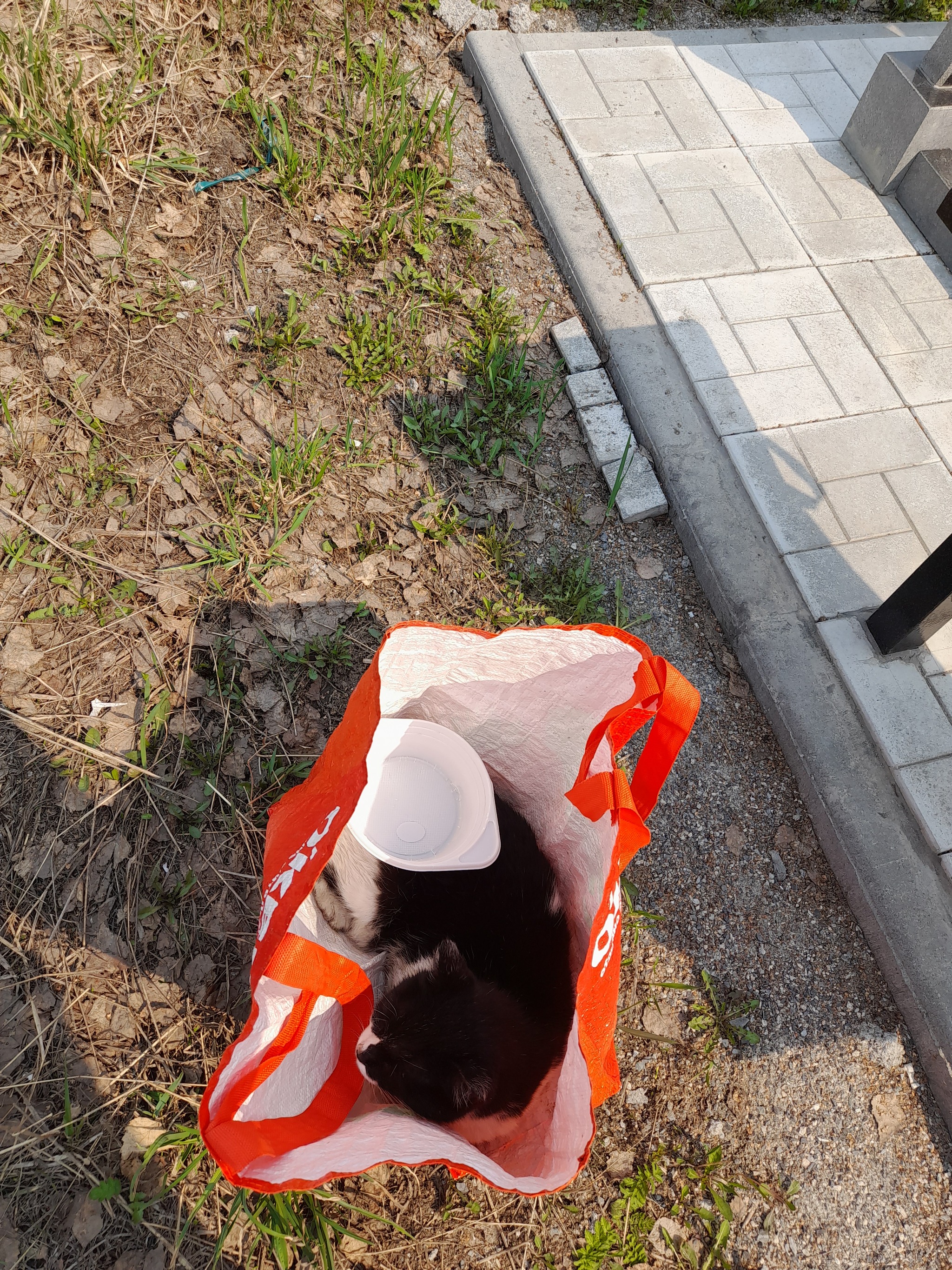 Довезли домой , отмыли его от говна и всего прочего , все равно воняет , капец . Дыхание вроде у него выровнялось, воду не пьёт, паштет кошачий смел, миска вращалась , немного просушили феном. И пока в клетку на балкон, там тепло , сейчас он там уснул . В 21:30 ждут в клинике , проверка на инфекции и паразиты, узнаем кот или кошка, сколько лет и прочее , а там дальше будем думать.