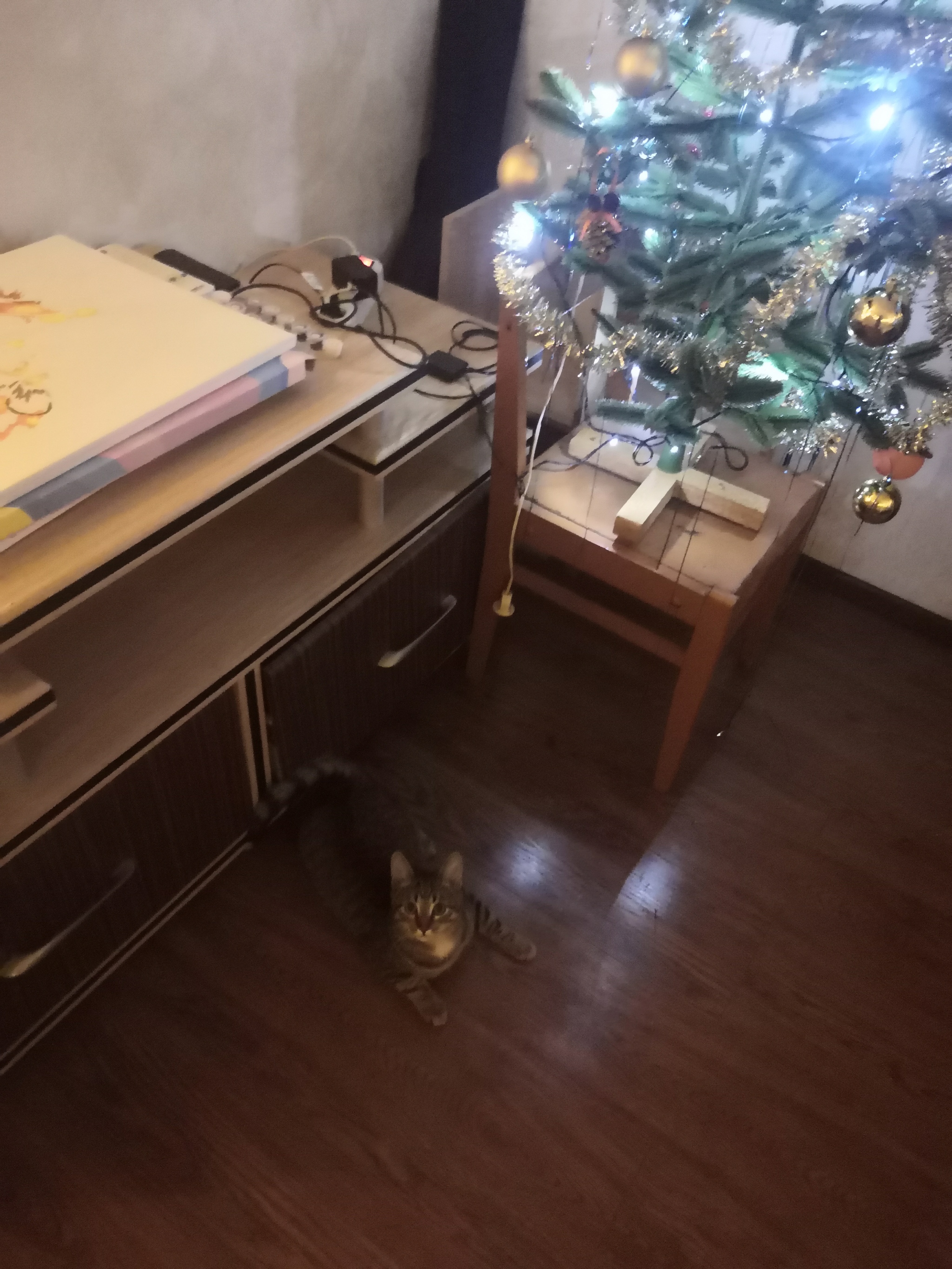 Гонял на огород. Проверить лазили жулики, или нет. Приехал с балластом. Назвал Варежка. Подошла, скромно мявкая, и вся дрожжащая. Теперь у неё есть слуга.