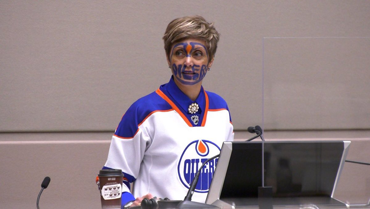Мэры Калгари и Эдмонтона зарубились чей клуб в плей-офф НХЛ сильнее. Проигравший должен был появиться на заседании городского совета в свитере команды-соперника и с разукрашенным лицом. После победы "Ойлерз" градоначальник Калгари Джоти Гондек не стала увиливать и честно выполнила условия пари.