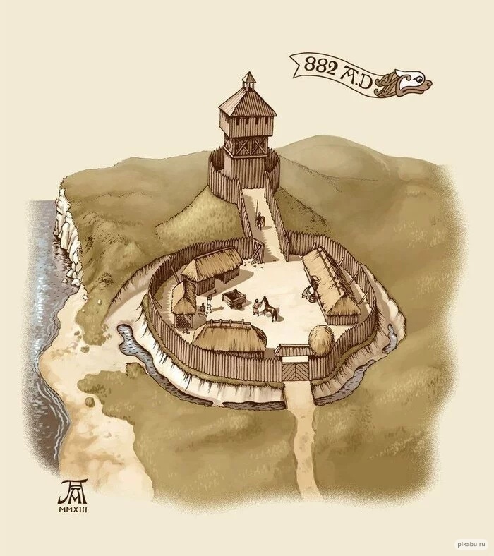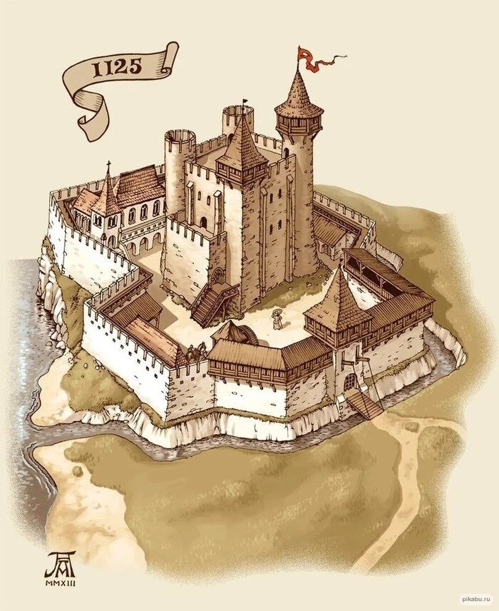 Замок начала 11 века - на месте старой башни на холме возведен каменный донжон, двор с частоколом и рвом устроен вокруг него, вход защищает надвратная каменная башенка, мост через ров в случае угрозы (о которой заранее возвестит наблюдатель на верхней площадке донжона) нетрудно разобрать и унести внутрь.