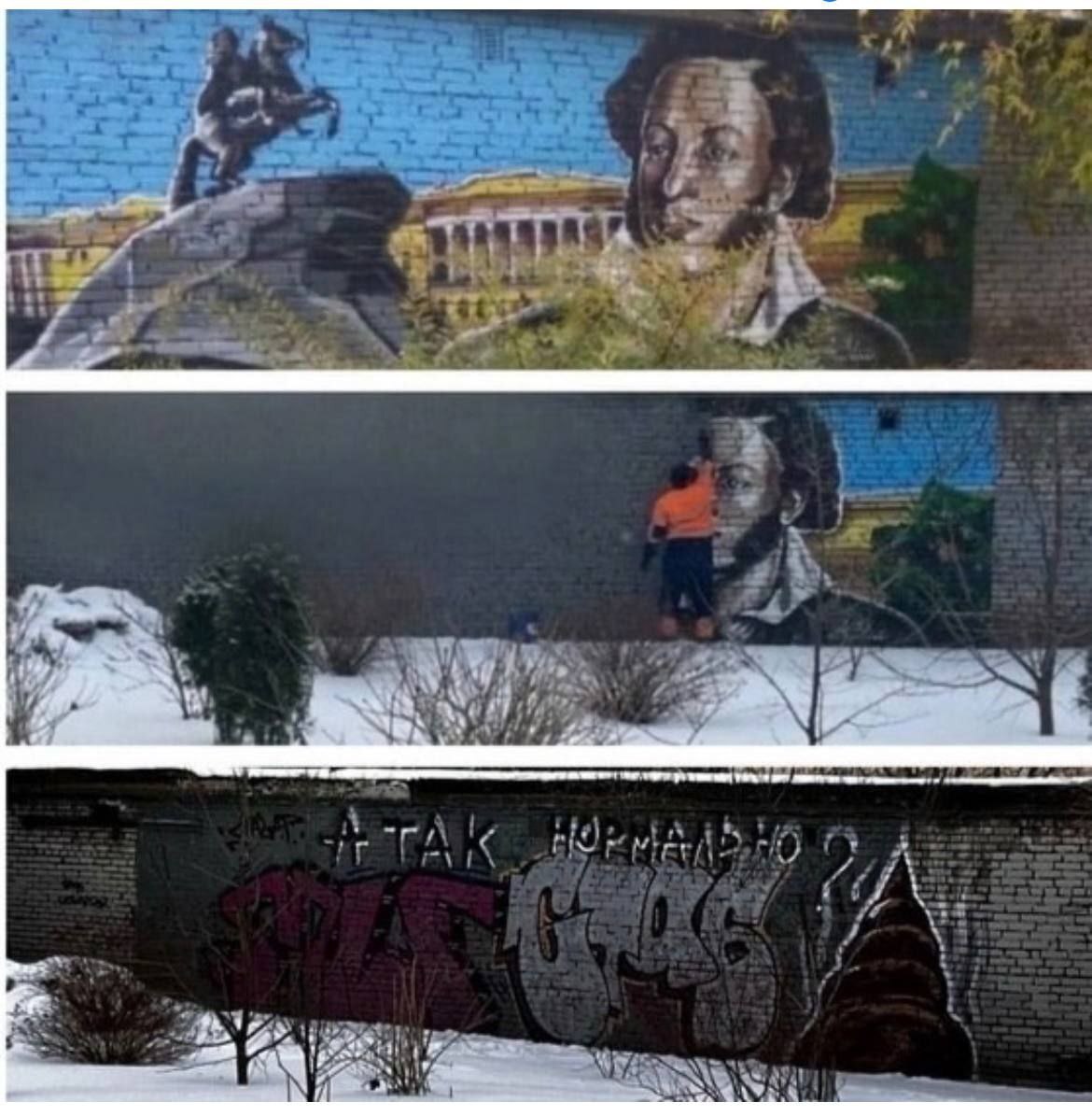 Жители Чёрной речки кинули ответку закрасившим Пушкина дикарям-коммунальщикам