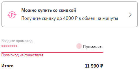 3. Применить неиспользованный промокод на новый заказ повторно - нельзя, так как он уже был применен в отменённом ранее заказе.