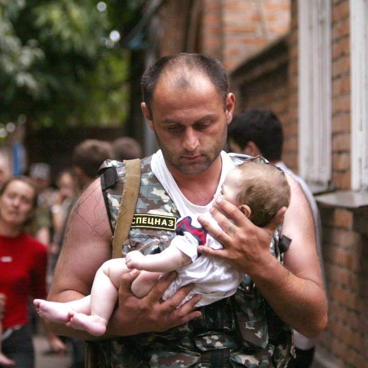 🌹 На первом фото — Эльбрус Гогичаев выносит 6-месячную Алёну Цкаеву во время теракта в Беслане, в тот день у неё погибли мама и сестра. Второе фото — спустя 16 лет Алёна пригласила на свой последний звонок своего спасителя!