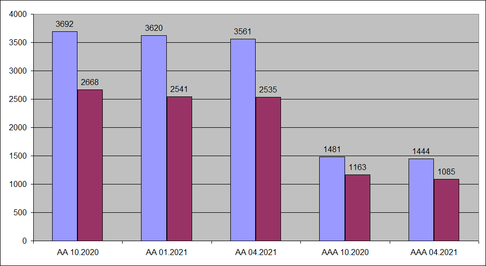 Часто бывает так, что первая партия оказывается лучше последующих, поэтому я снова купил батарейки Auchan High Performance в конце сентября, причём в продаже были батарейки AAA с датой выпуска 04.2021 и AA с датами 01.2021 и 04.2021. Судя по всему, это вторая и третья партия.