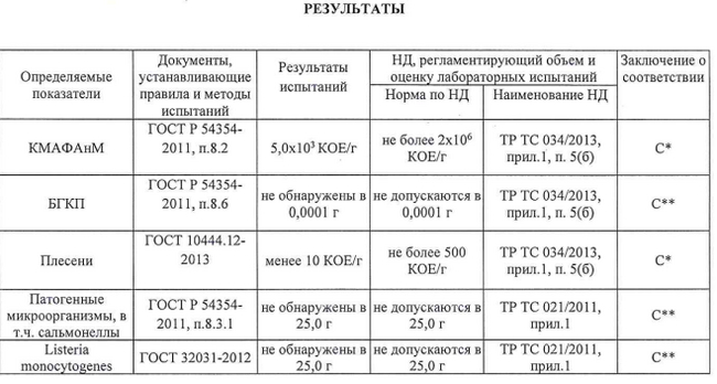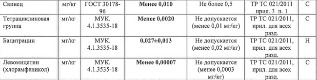 Органолептика, тяжелые металлы, антибиотики - полный порядок. (приложил скрин из протокола брест-литовска, у всех остальных тоже полное соответствие). Не переживайте, позже я напомню у кого что было в микробиологии.