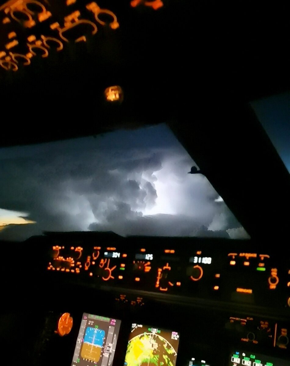В 2011г, когда я летал на Airbus вторым пилотом, мы полетели Новосибирск-Сочи. Прям посреди трассы стояла грозища на нашей высоте. Мы и так шли на предельном эшелоне, но капитан решил еще выше подняться, обойти.