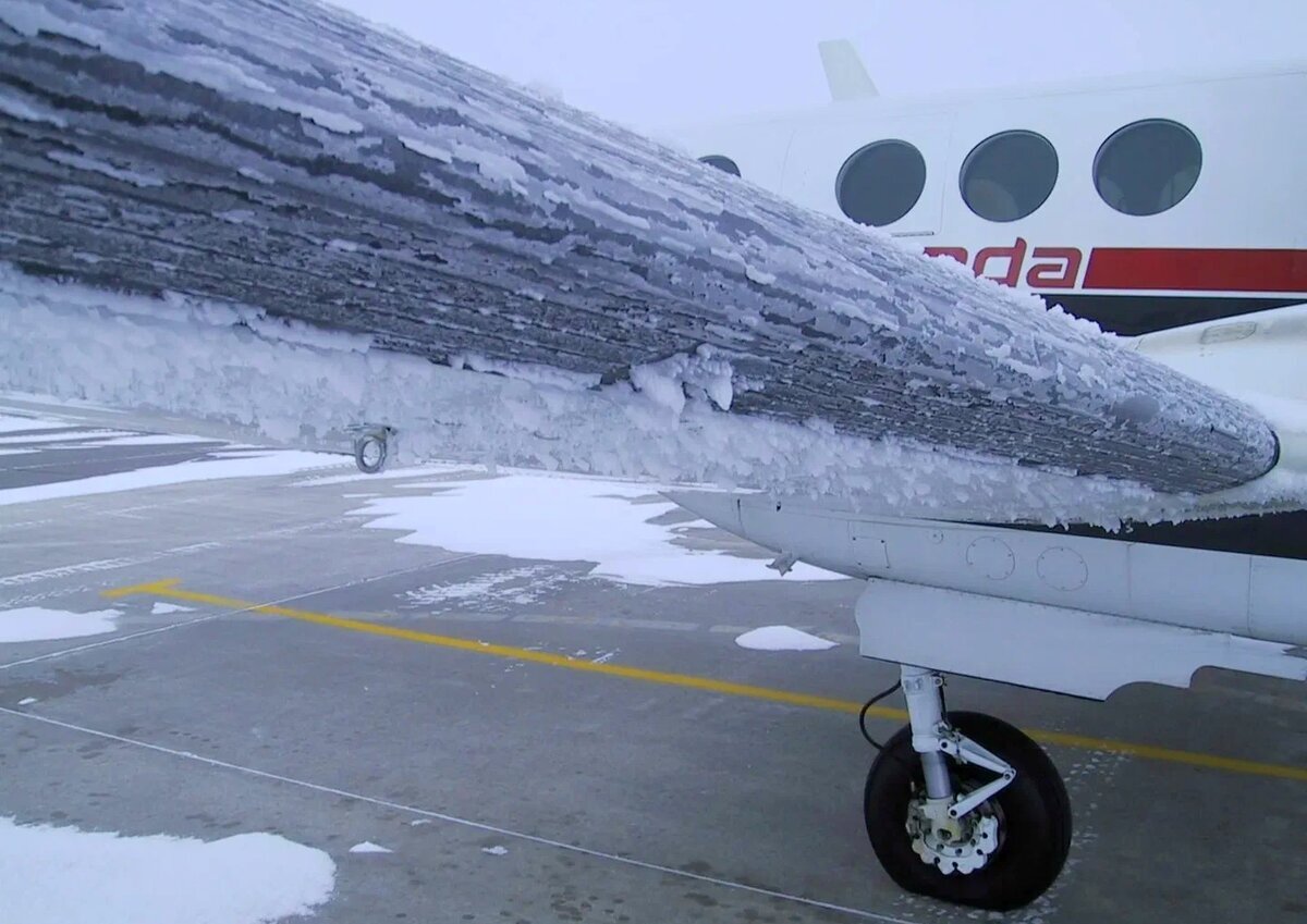 Лёд нарастает на передней кромке крыла, стабилизатора, киля. Резко снижает подъемную силу, создаёт лобовое сопротивление. Уменьшает критический угол атаки. Т.е самолет может войти в сваливание на более высокой скорости. Лёд налипает на лопатках двигателей, затем срывается, что может привести к отказу или повреждению двигателей
