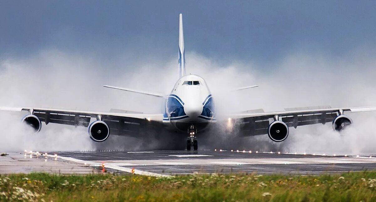 Во время дождя просто необходимо садить самолет пожестче, чтоб колеса пробили водяную пленку на полосе. Иначе возможен эффект аквапланирования.