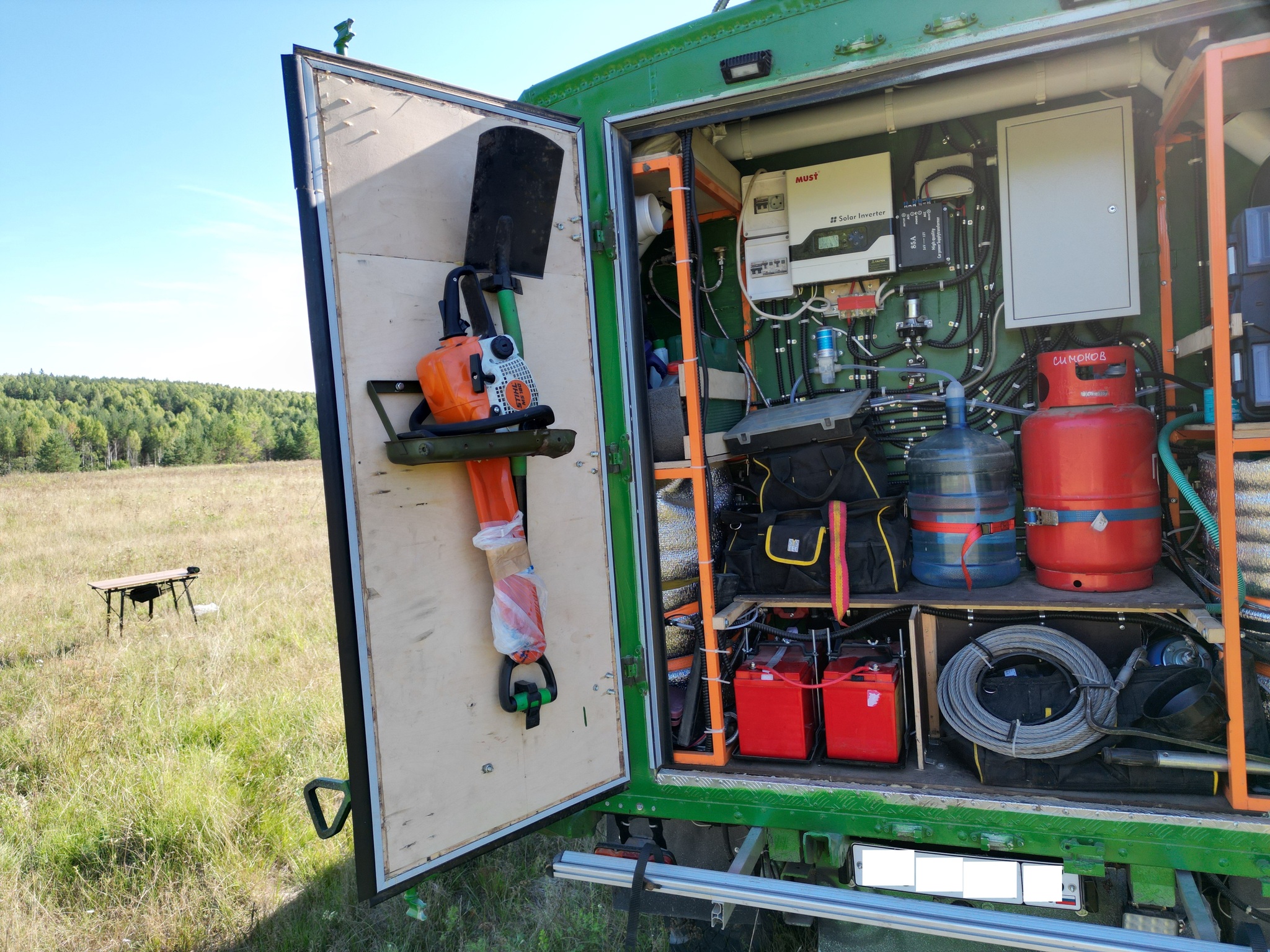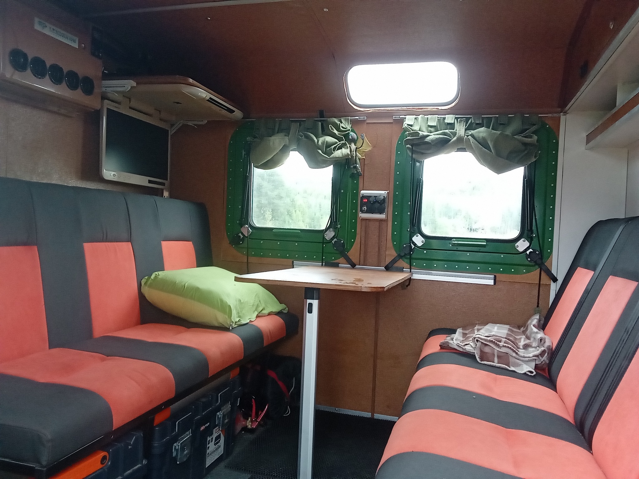 Был приобретен кунг К1.66, после чего все железо из него было выкинуто. Зачистил от гнили. По планировке кунг разделил на два отсека: технический и жилой. В техническом отсеке размещены все инженерные системы, техническое барахло и т.п. В жилом отсеке соответственно жилая зона. Описывать, думаю, особо смысла нет - все видно на фото.