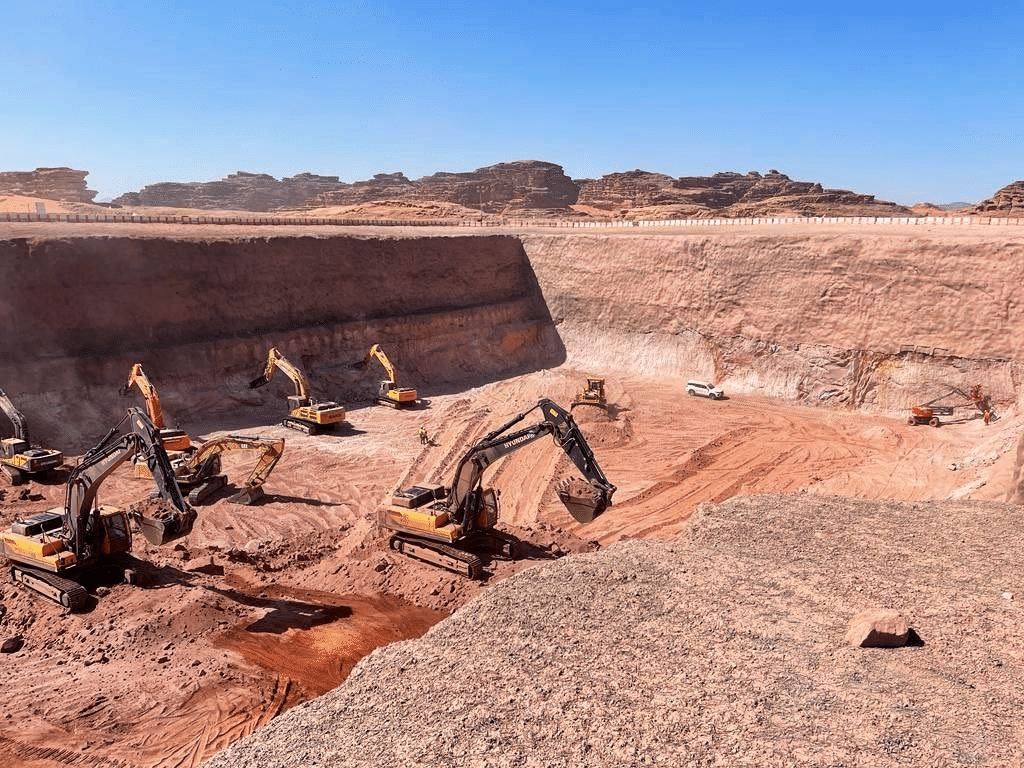 Появились новые изображения со строительства саудовского мегаздания-города «Зеркальная линия» (The Line). Прошел примерно год с начала его возведения.