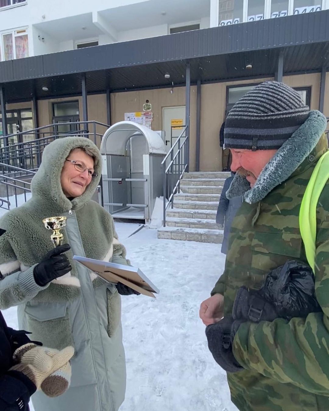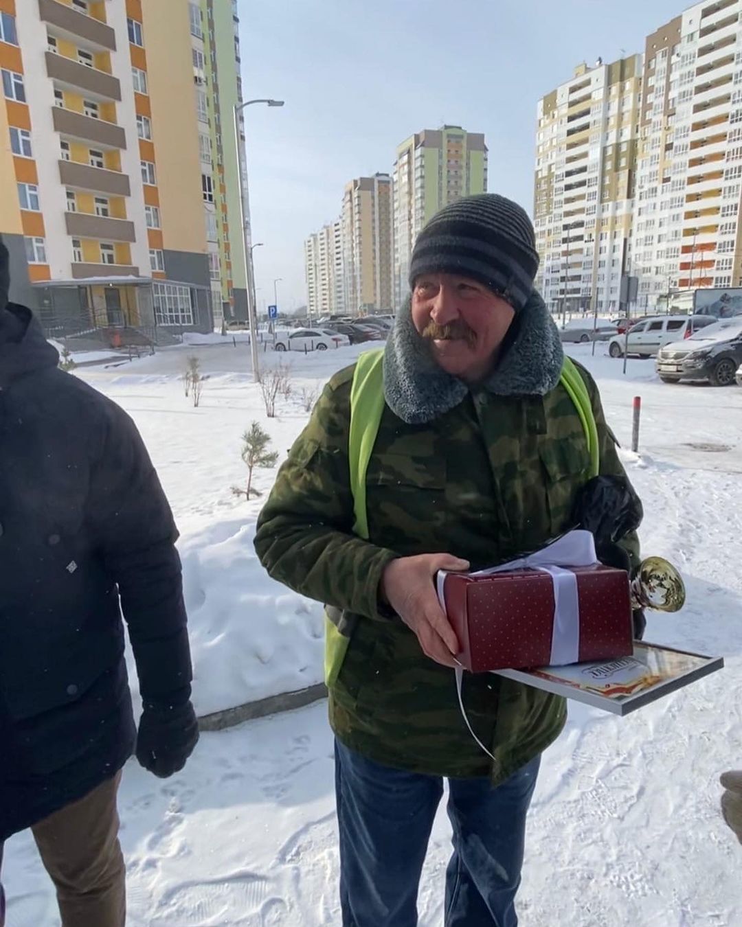 В Тюмени жильцы дома вот так поздравили дворника с 23 февраля.