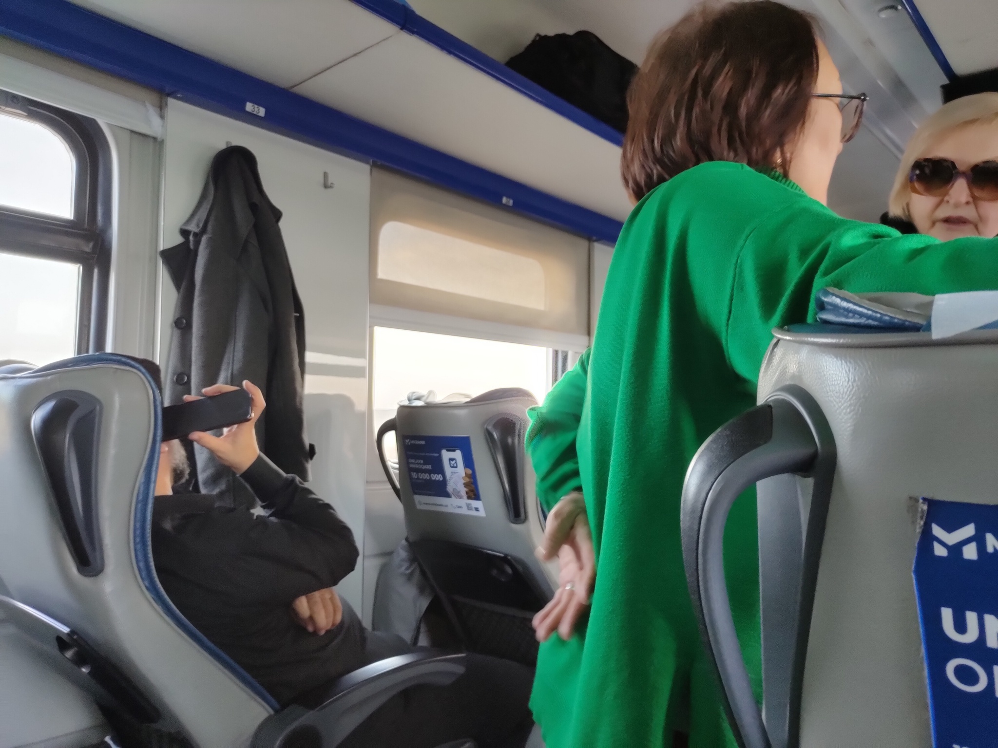 P.s. Стояли они потому, что движение - жизнь. Даже когда она уселалсь через час, то всю оставшуюся дорогу разминалась, размахивая руками.