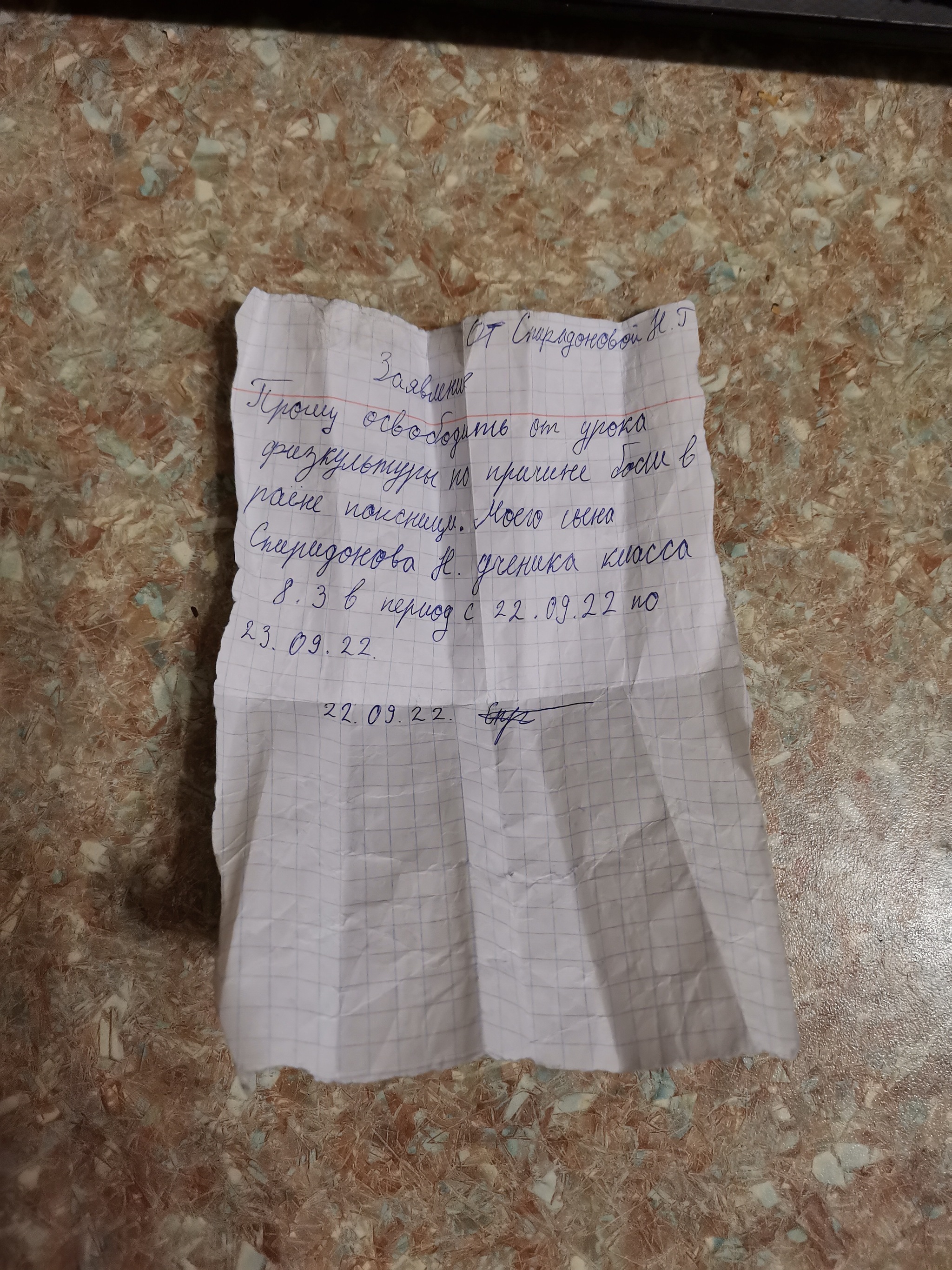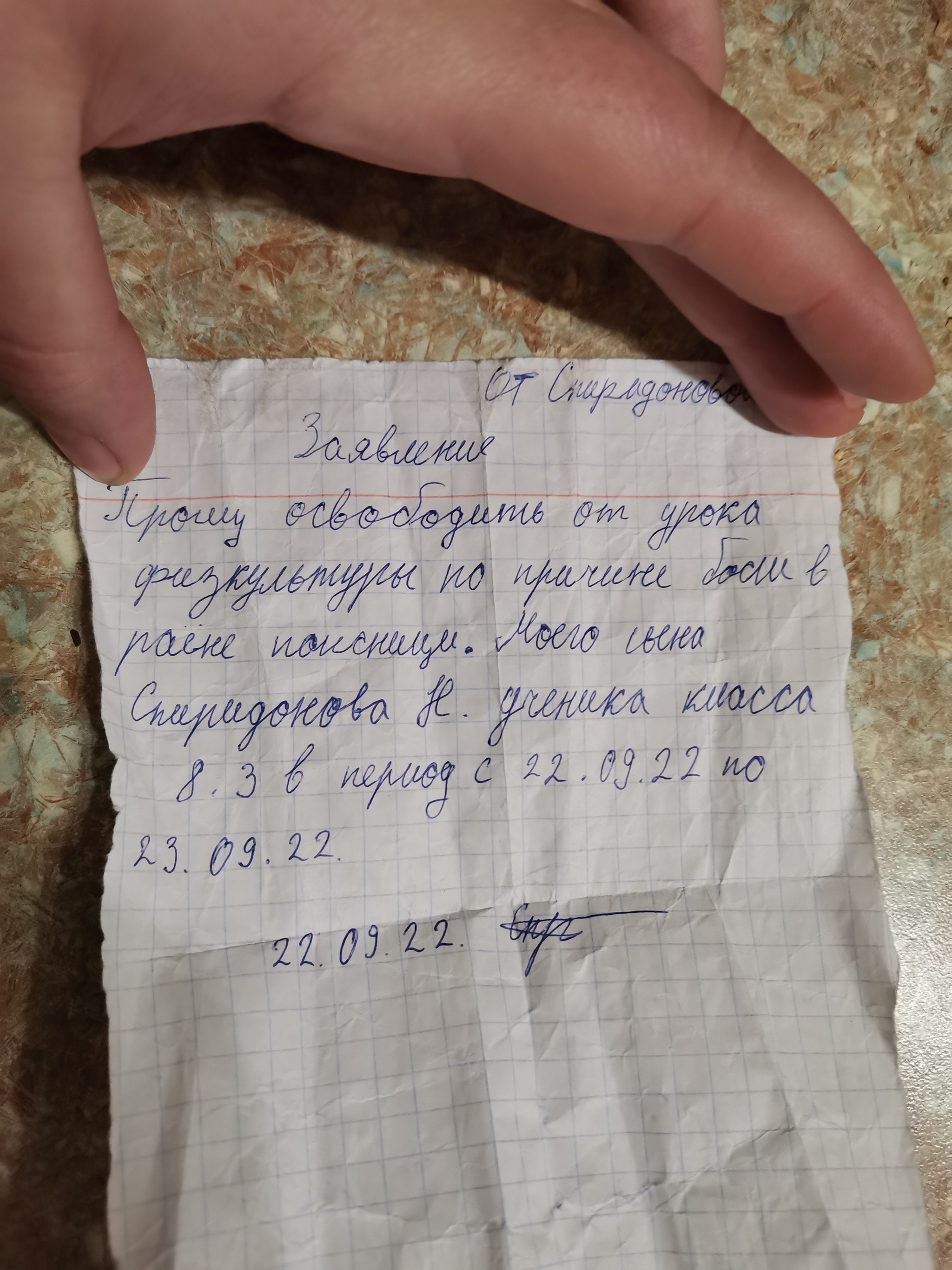 Папа у меня работает в школе учителем физкультуры. Сегодня к нему подошёл ученик 8 класса и передал вот такое заявление.