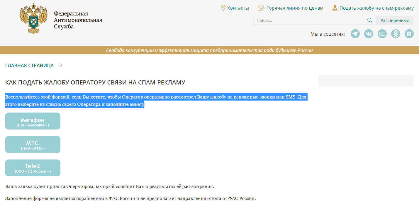 ссылка на форму для подачи жалобы. https://fas.gov.ru/pages/zhaloby-sms